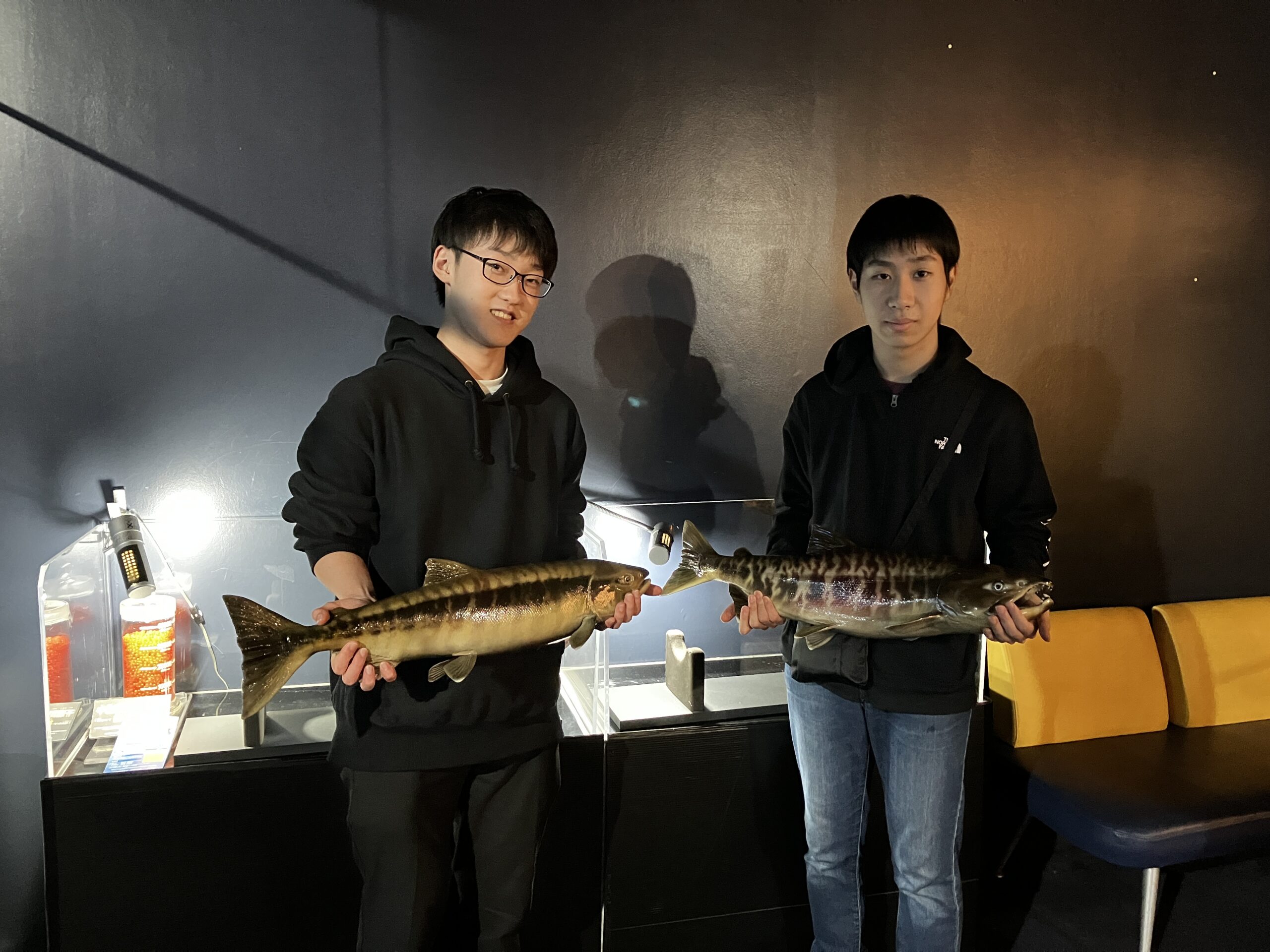 次に訪れた『サケのふるさと千歳水族館』では、淡水魚に触れたり、生態を学びました。また、裏手にある千歳川ではサケの漁の真っ最中で、その様子を食い入るように見学していました。