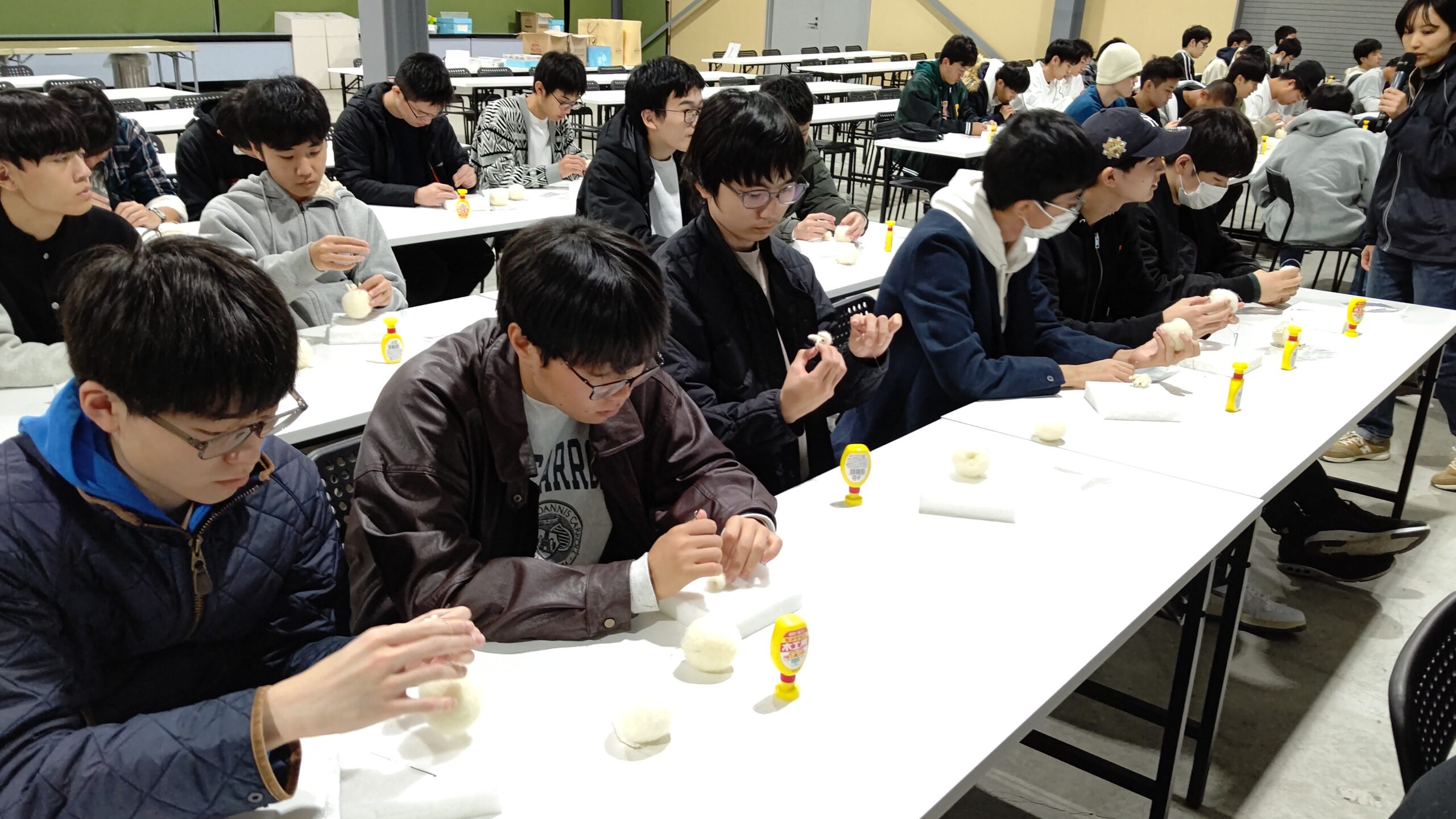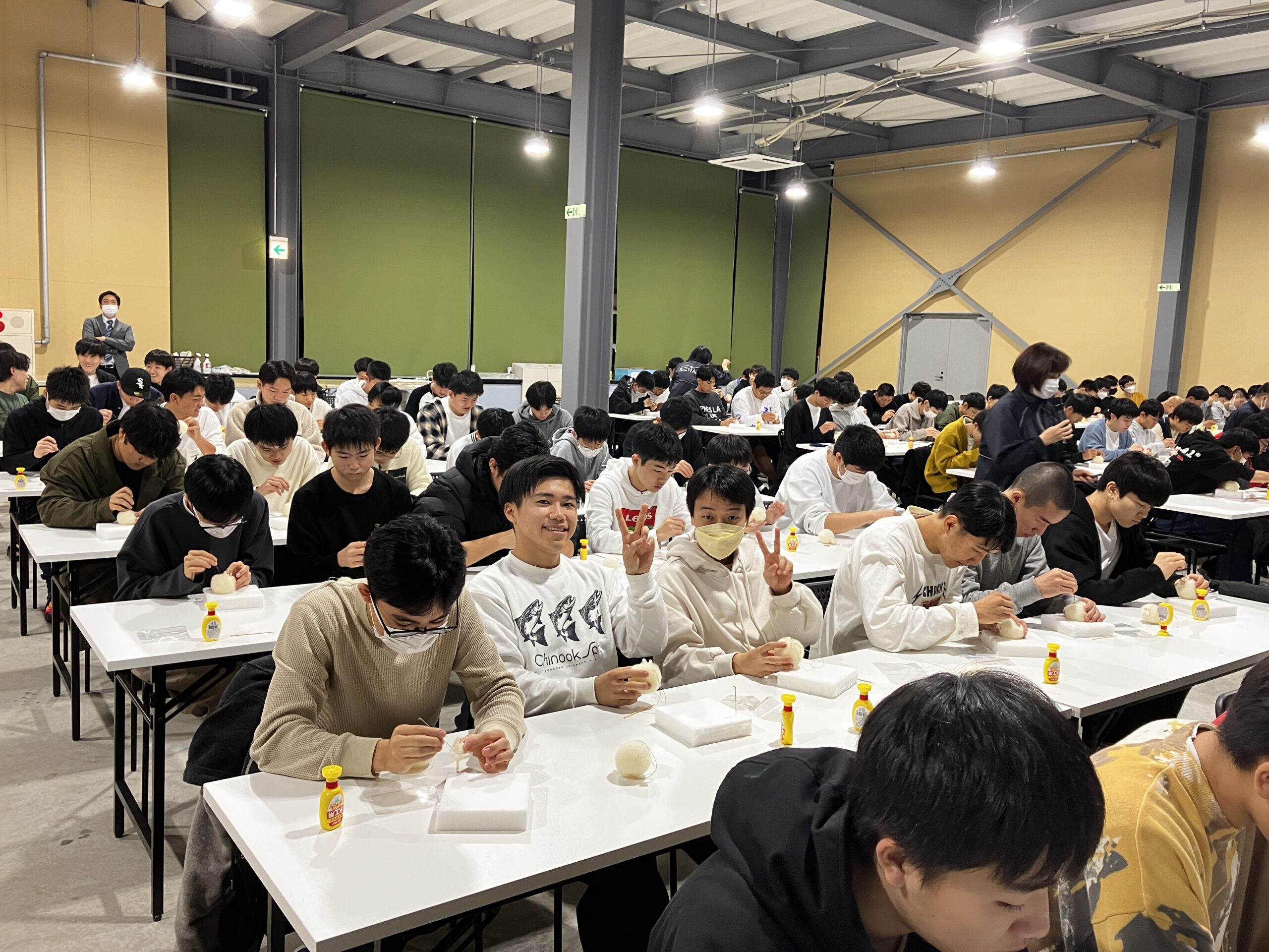 ハンバーグプレートで腹ごしらえをした後に、生徒たちはエコ学習として健全な食のあり方について考察しました。そして、ひつじ玉作りに取り組みました。かわいいひつじ玉を一生懸命に作り、嬉しそうに大事に持って帰る姿が印象的でした。