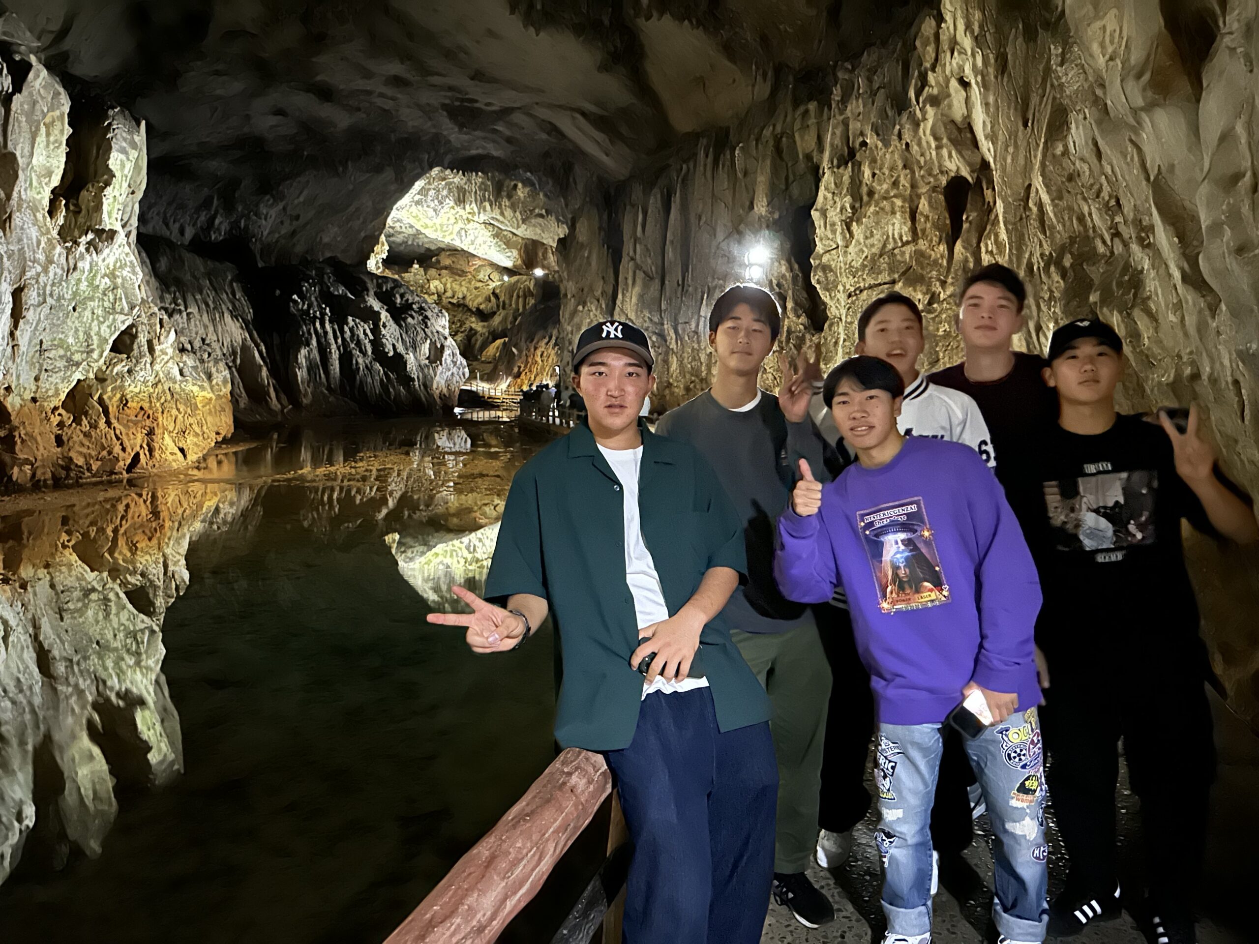 2日目は、まず山口県の秋吉台と秋芳洞に行きました。日本最大級のカルスト台地である秋吉台では、ハイキングを通じて大自然が造りだした神秘的な風景を堪能しました。