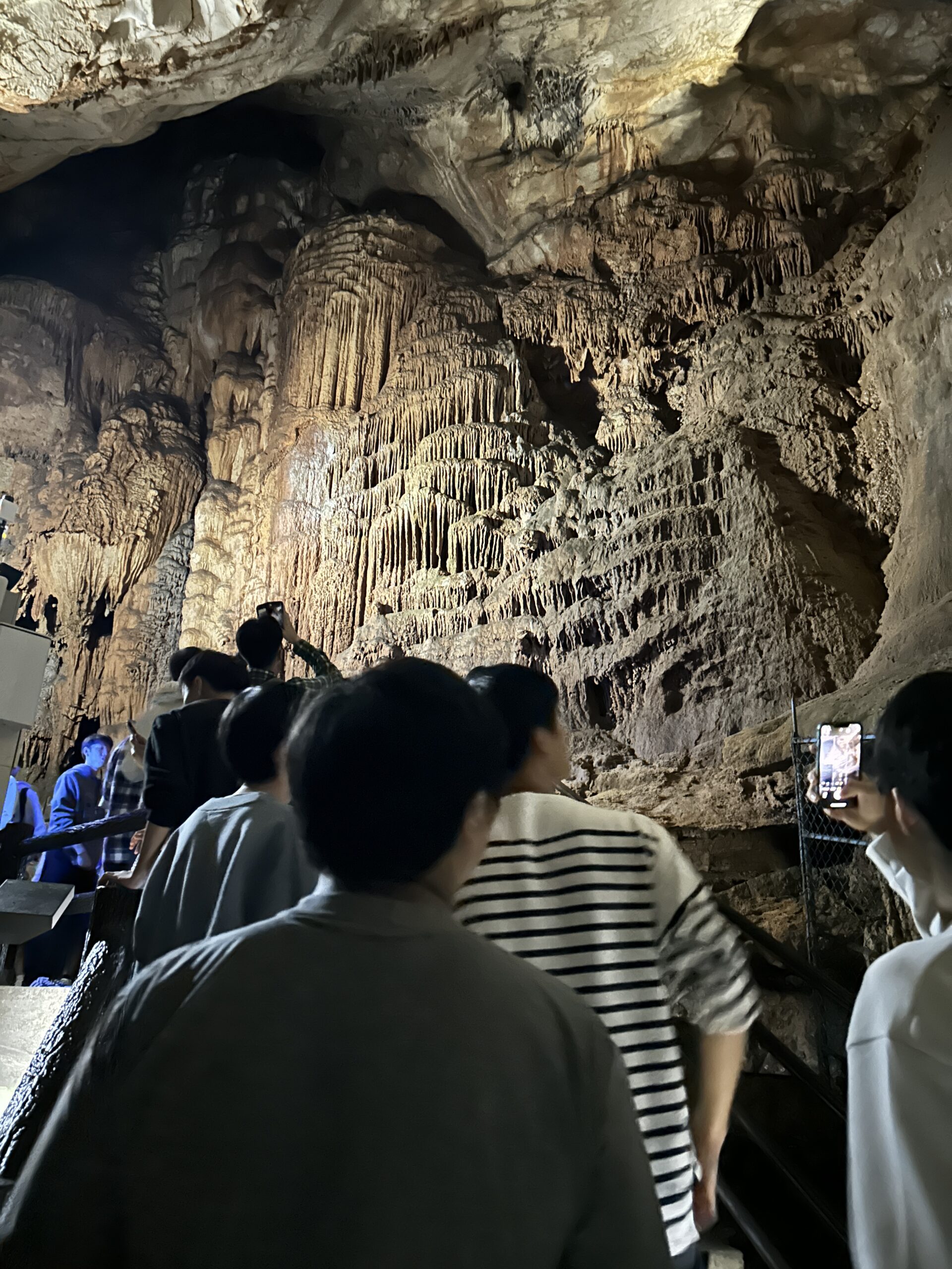 日本屈指の大鍾乳洞である秋芳洞では、約1キロのコースを歩き、地下水によって造り出された神秘的な空間に驚きの声が途絶えることがありませんでした。