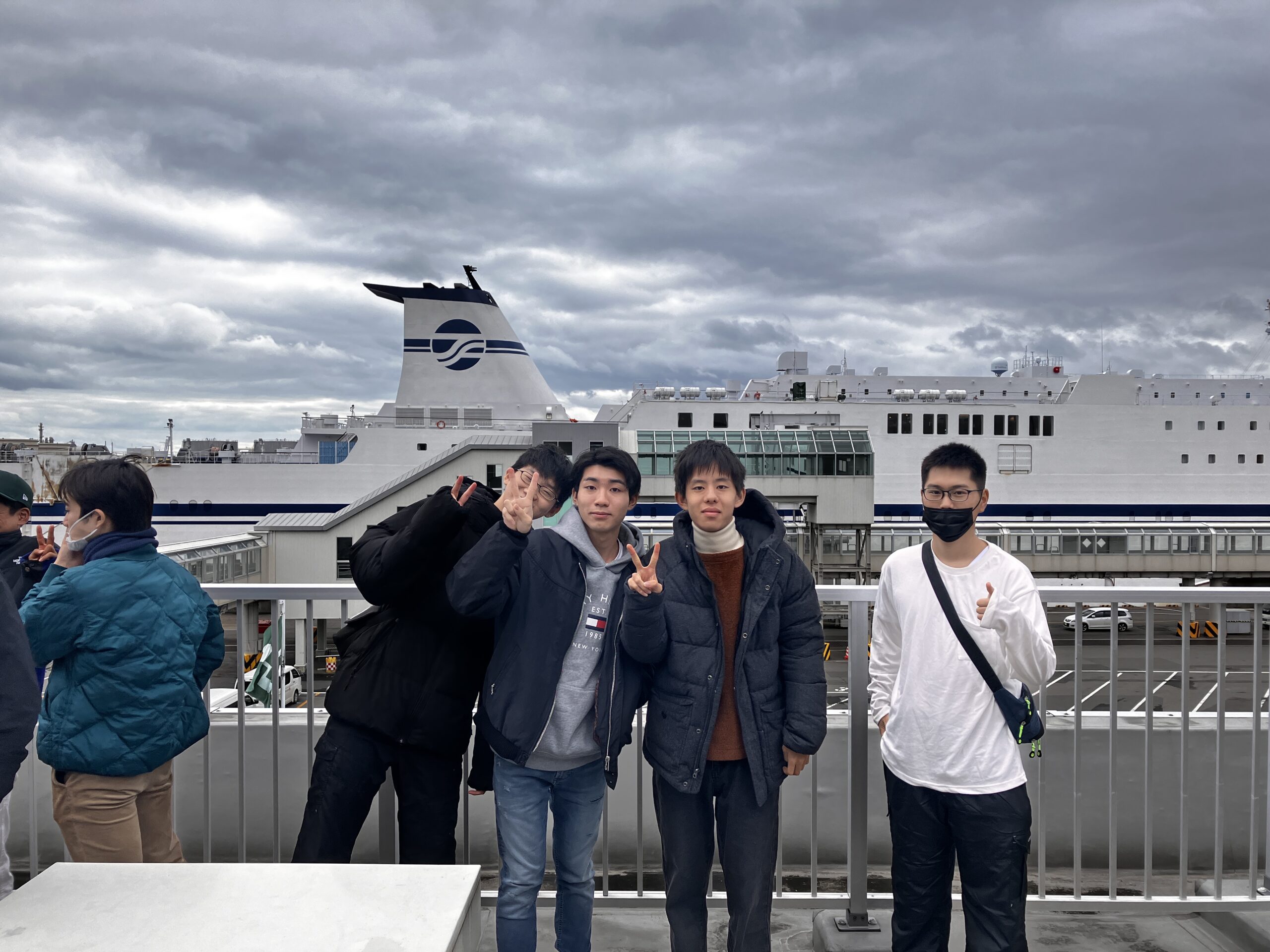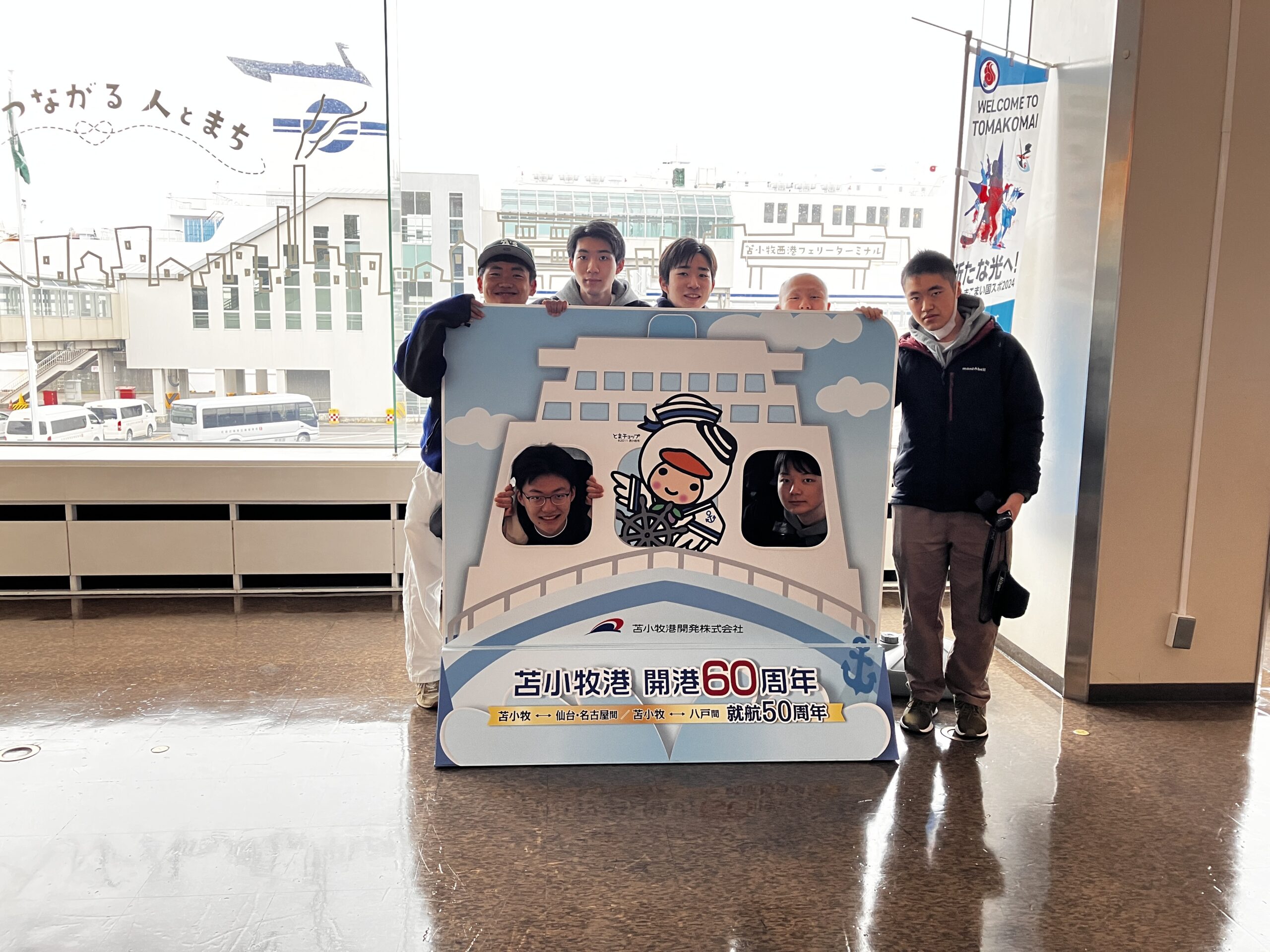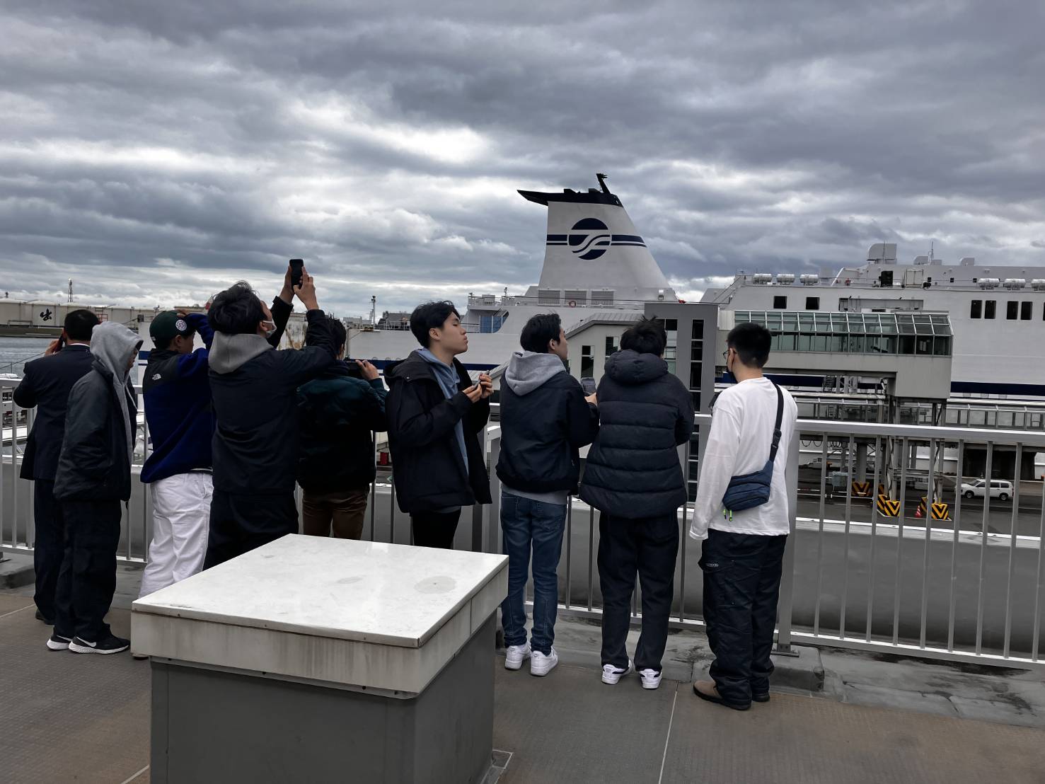 続いて訪れたのが『苫小牧西港フェリーターミナル』です。歴史を学習した後に,外に出て見たフェリーの大きさに驚いた様子でした。