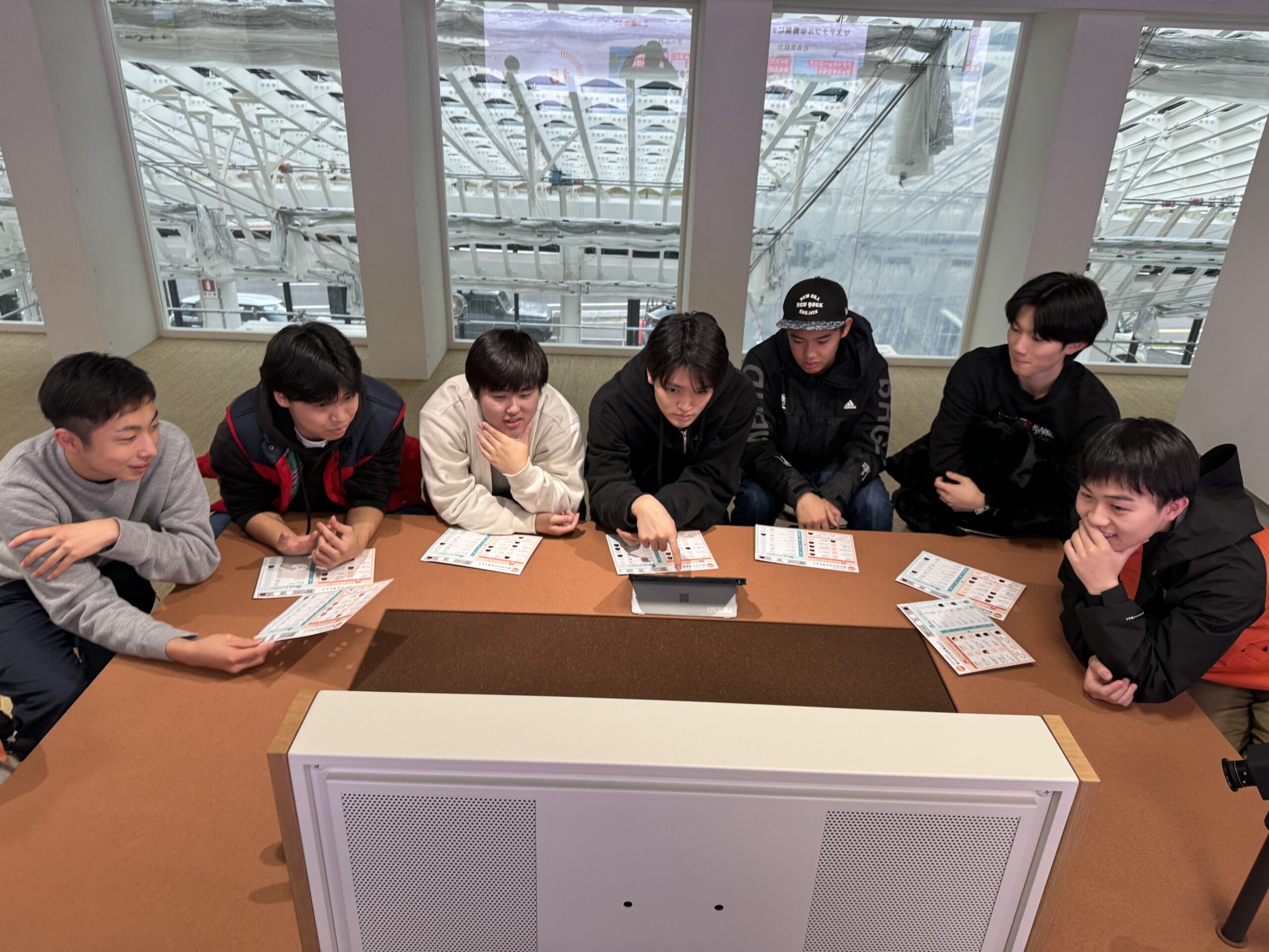 最後に『北海道ボールパークFビレッジ』に行きました。エスコンフィールドの観客席で昼食をとり,アドベンチャーパークでのアスレチック(希望者)に挑戦し,クボタアグリフロントで農業について学習しました。特に,クボタアグリフロントではグループで農業クエストに取り組み,農場経営について知ることができました。また,AIなどを使ったスマート農業や,ロボットアームもある工場栽培など,理系の学びとして将来に繋がるものばかりでした。
