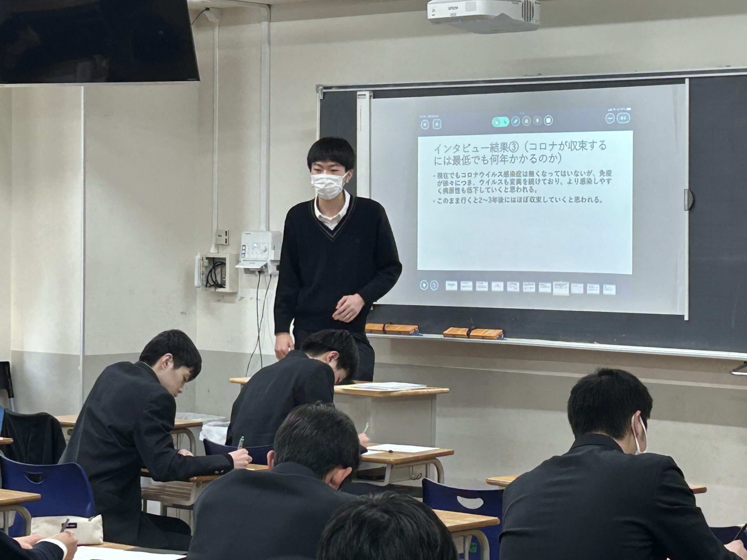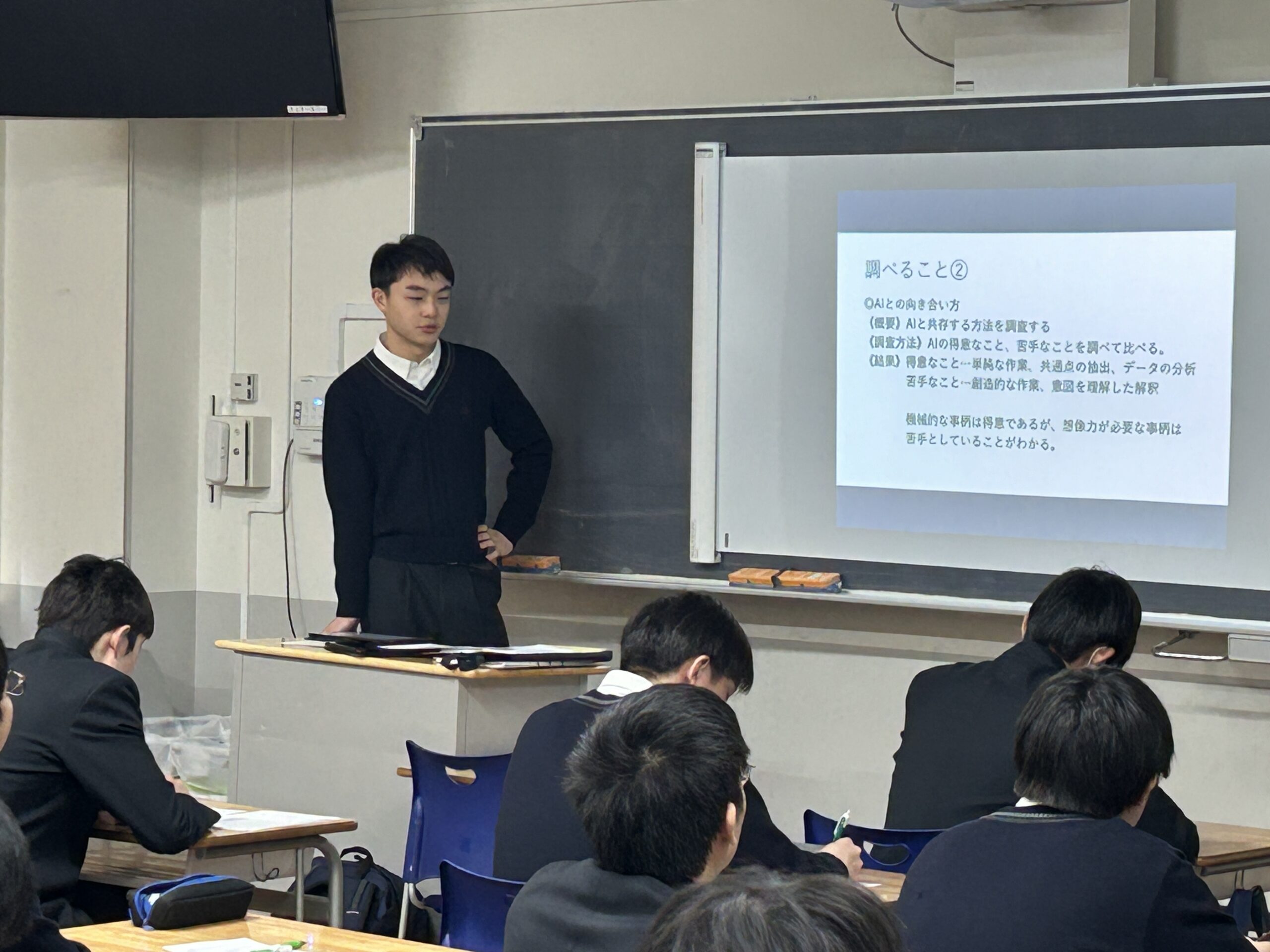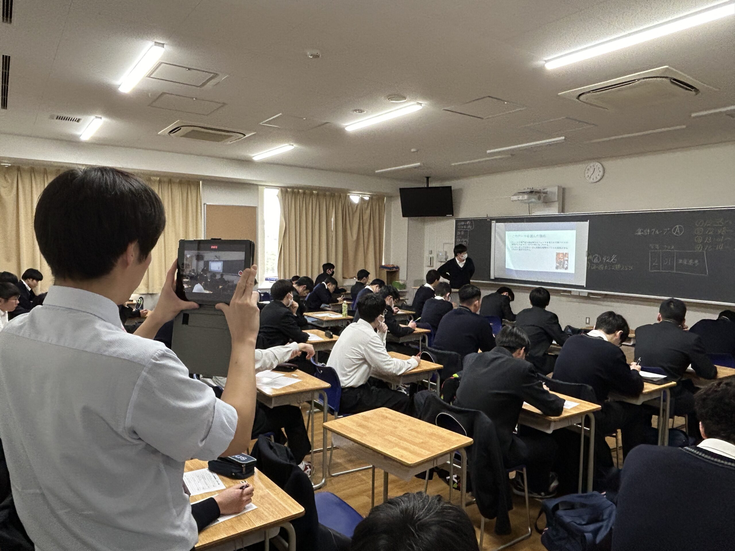 高校2年生・1年生が「探究」合同最終発表会を行った。