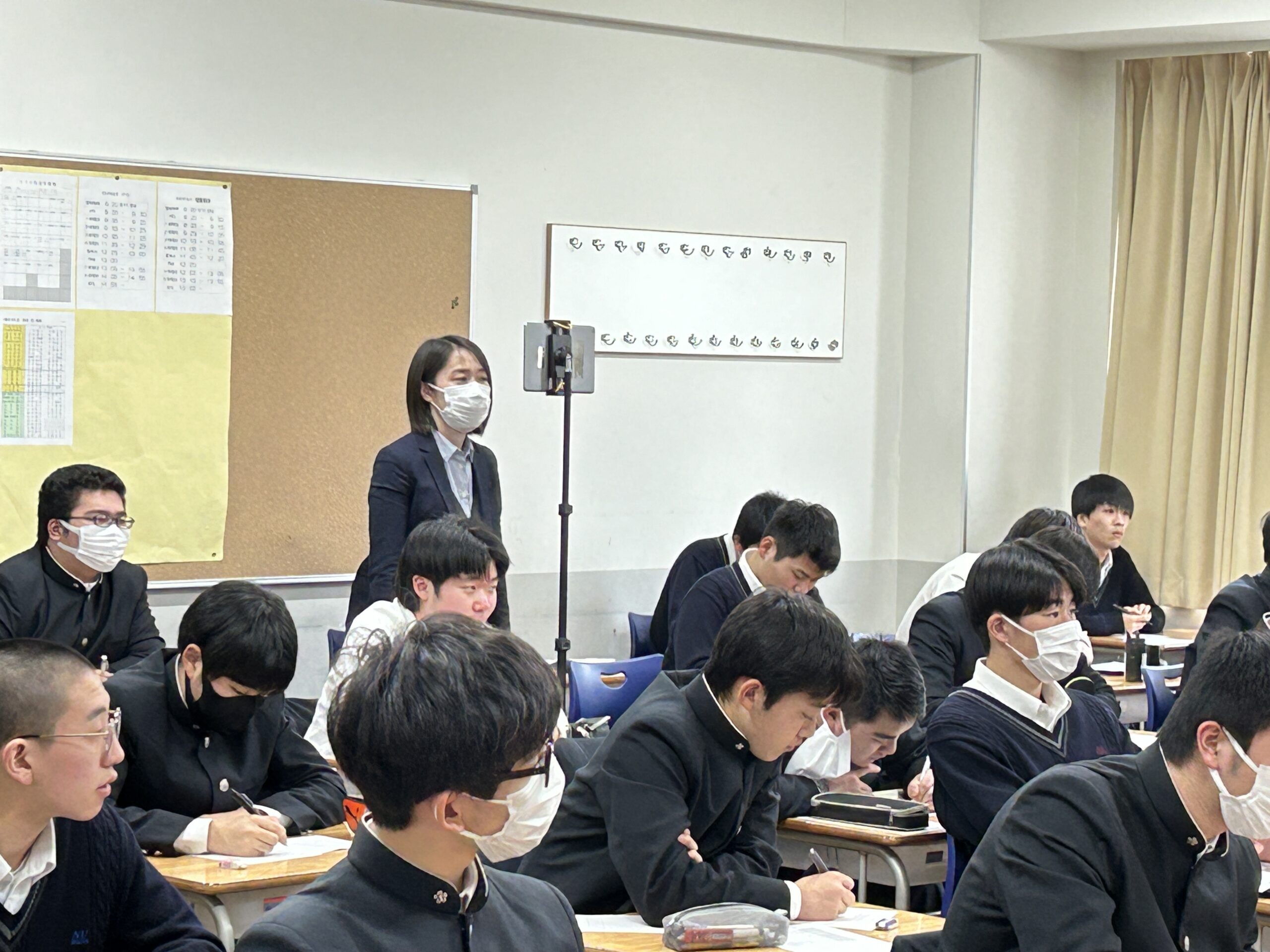 発表者である高校2年生は、探究活動の成果発表をさまざまな方に聞いてもらい助言を得る機会を得た。また、高校1年生は次年度に行う探究活動の参考として、発表の方法や探究方法の参考例を学ぶきっかけとなった。質問をする1年生に丁寧に答える2年生、発表後は各教室から拍手が聞こえてきた。