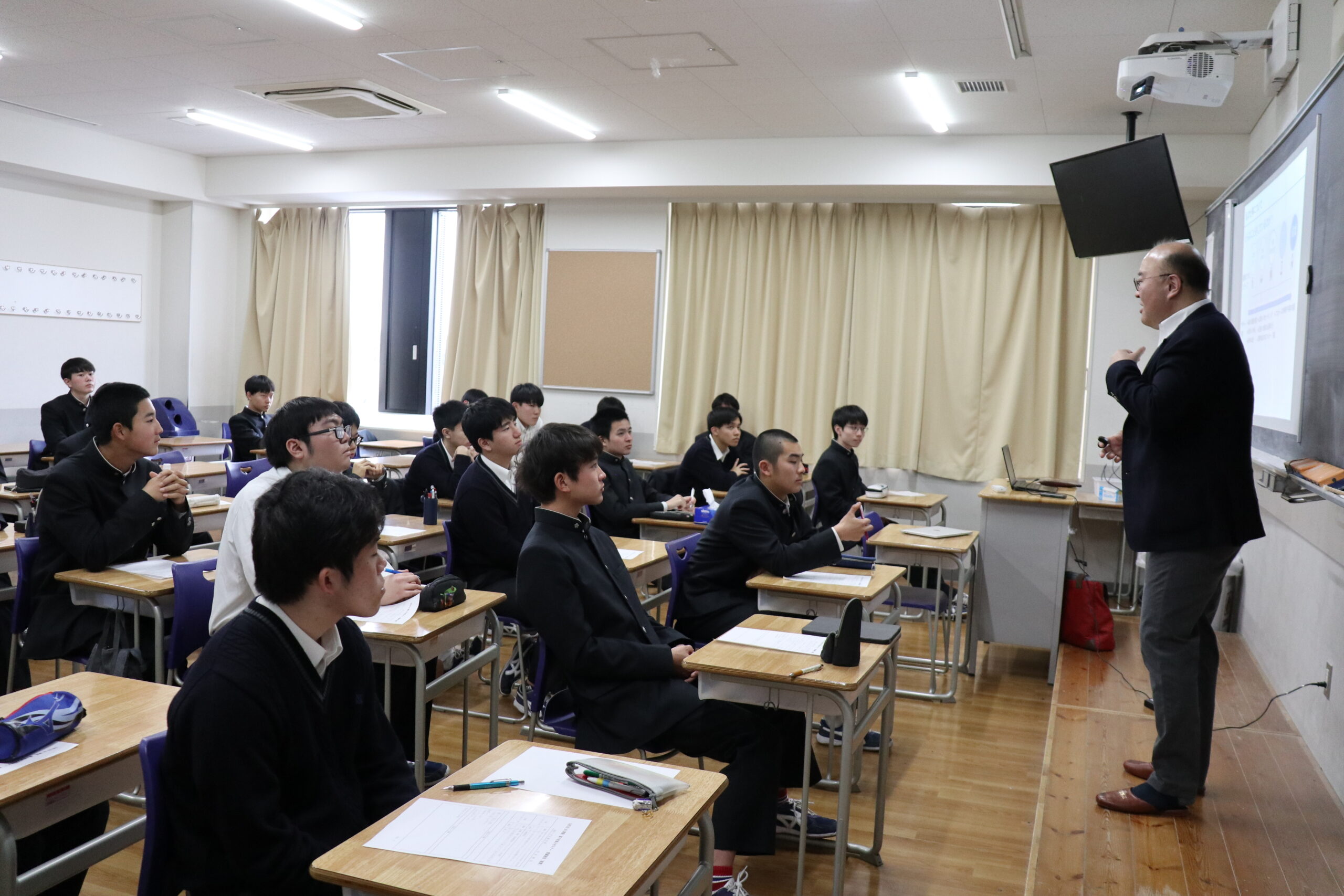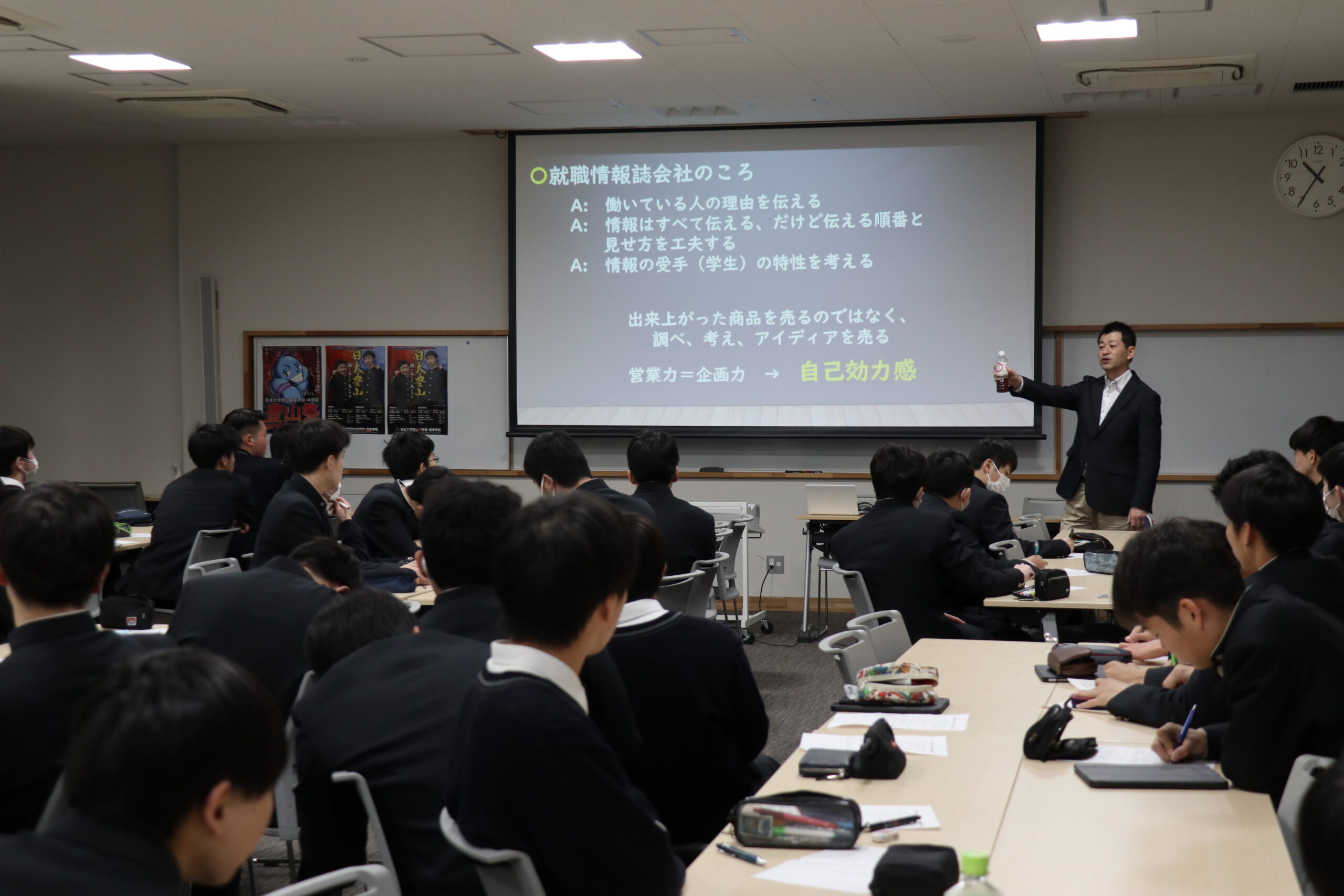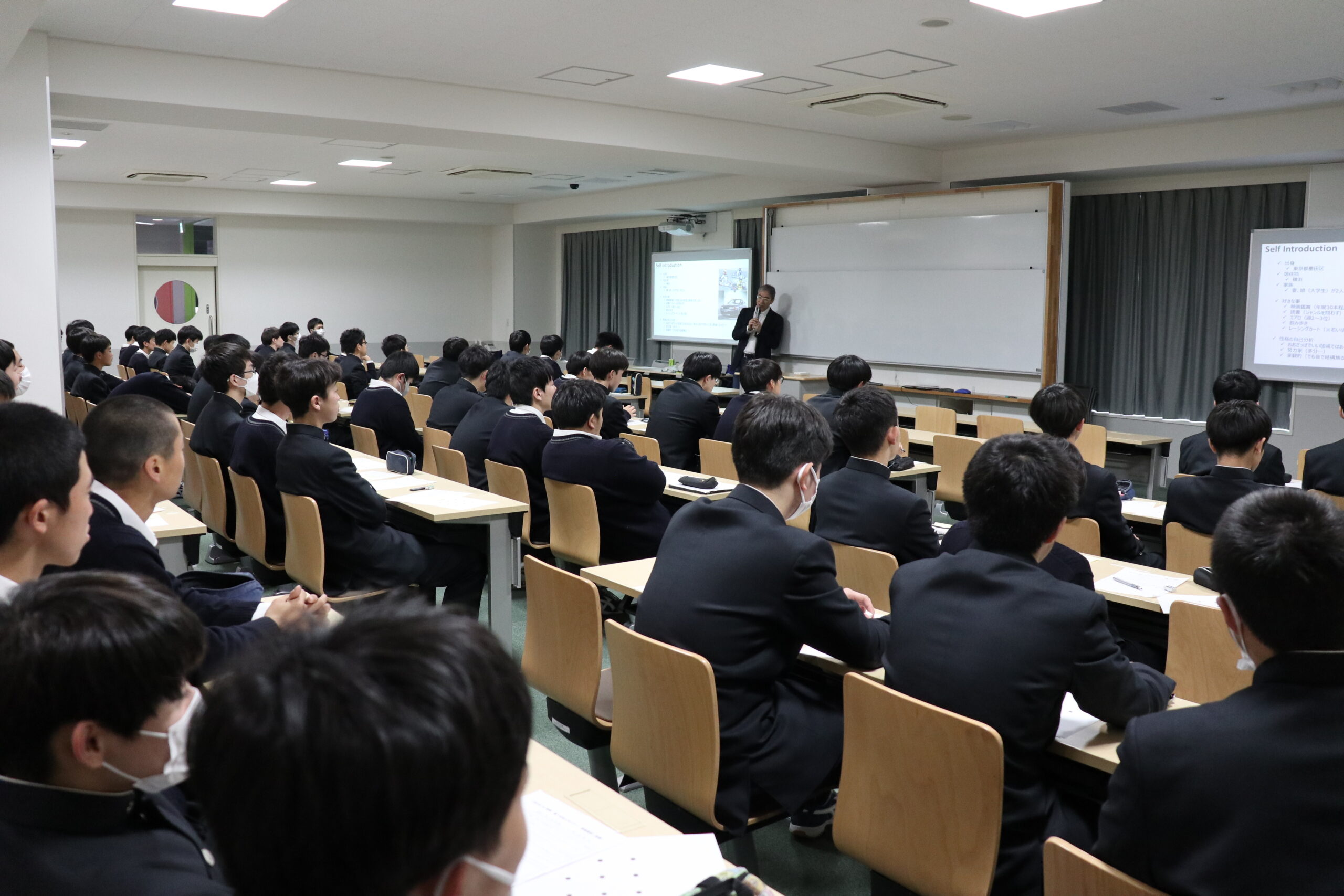 生徒たちはメモを取りながら、真剣に話を聞いていました。