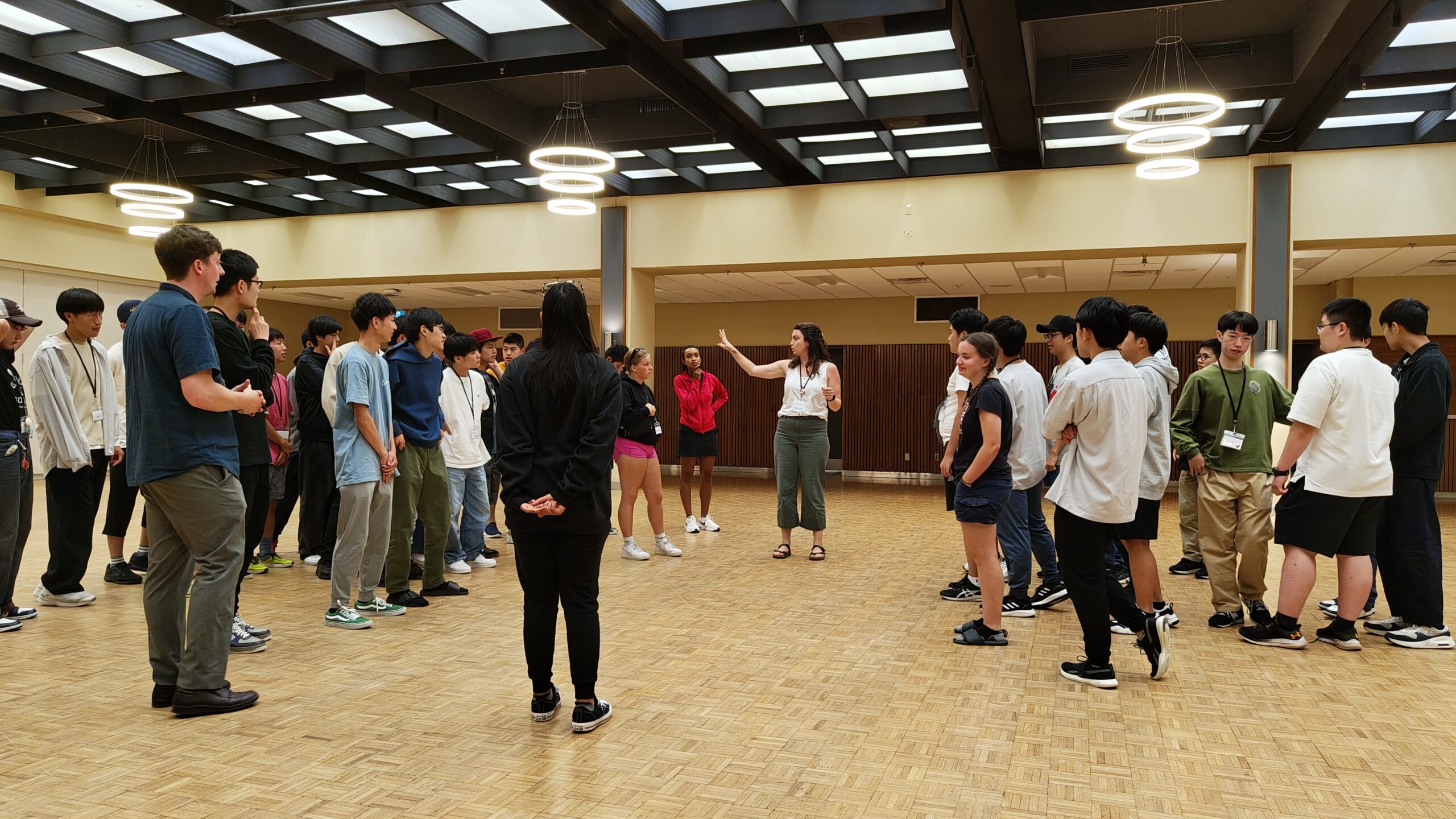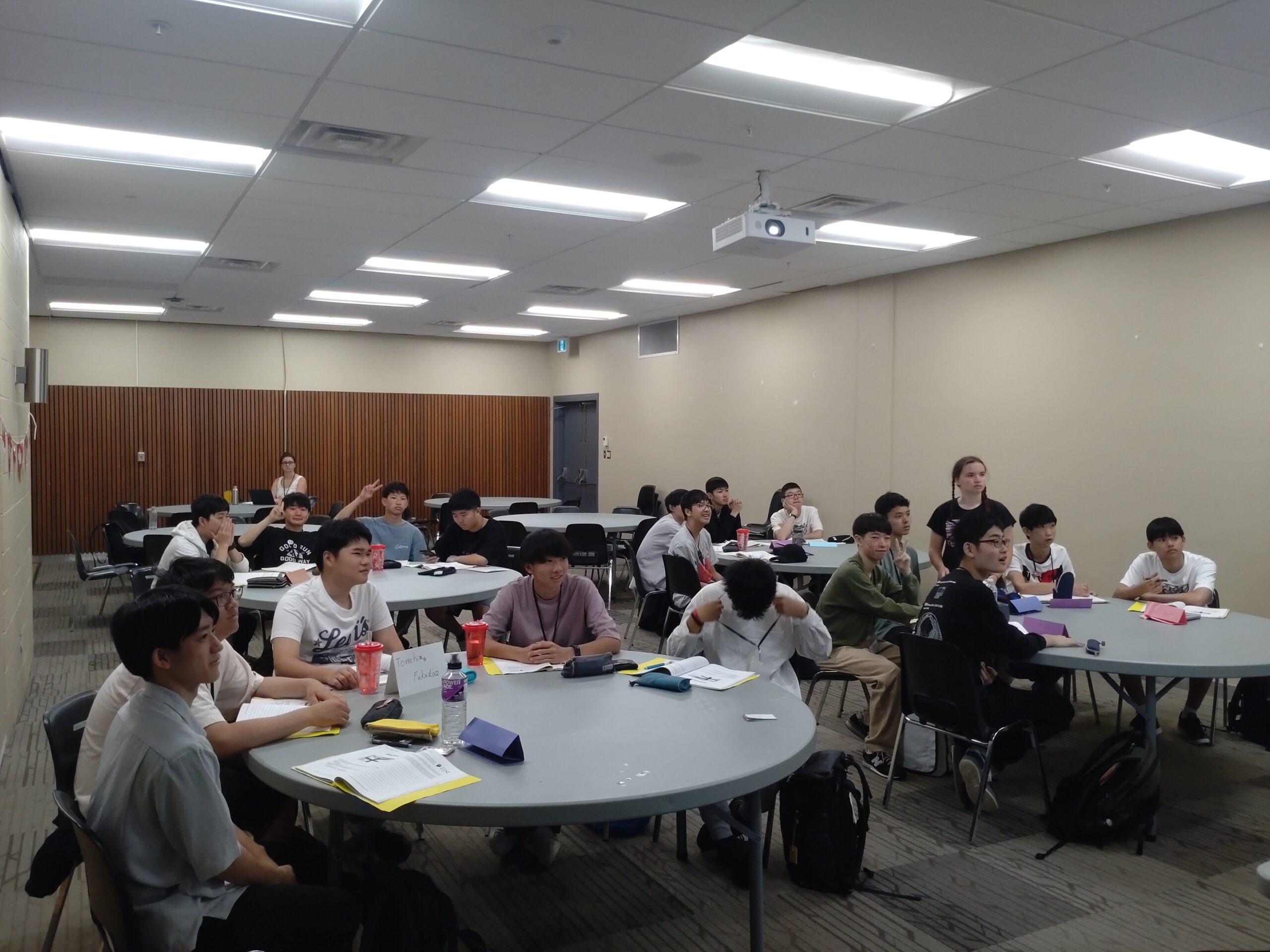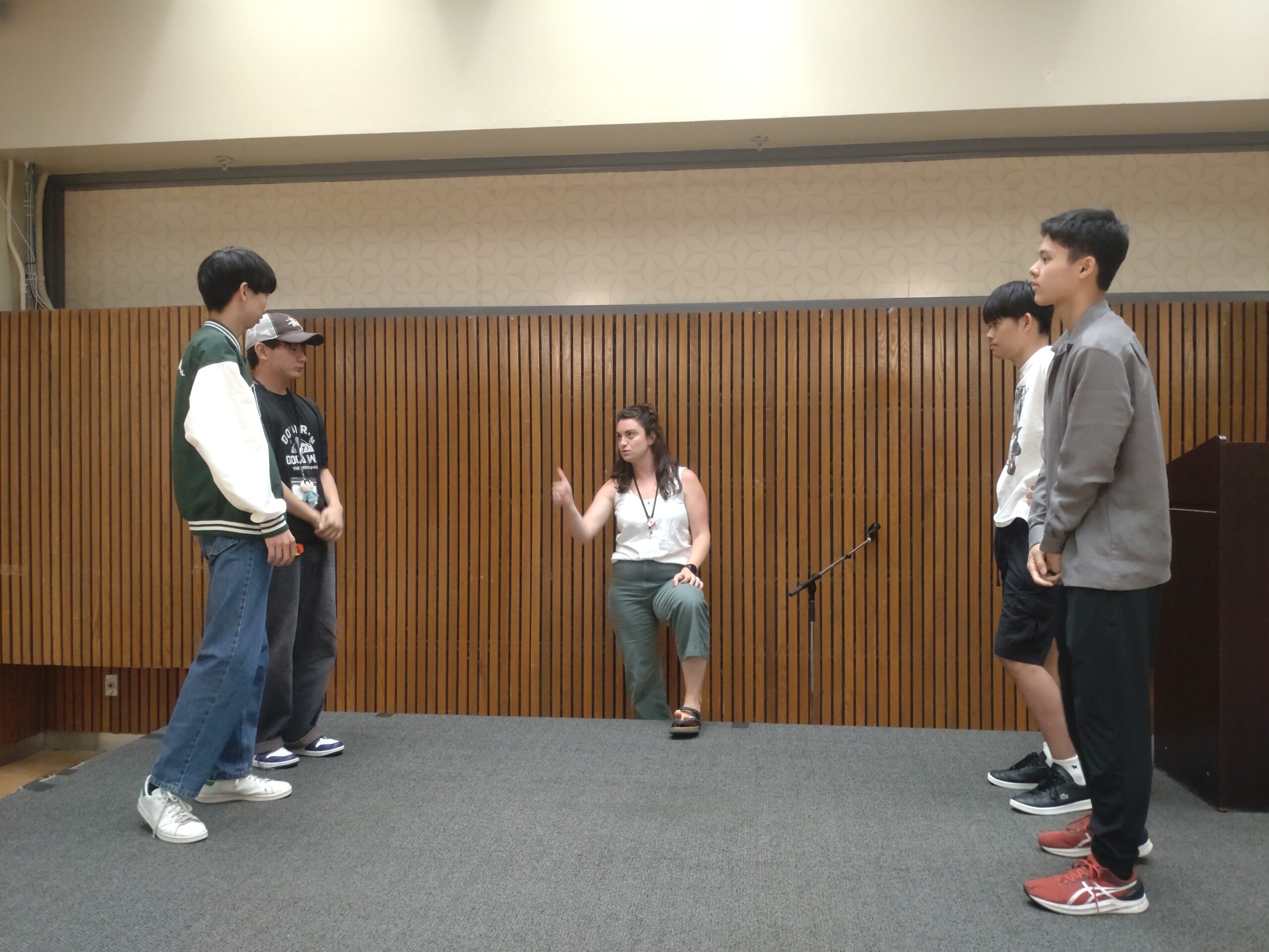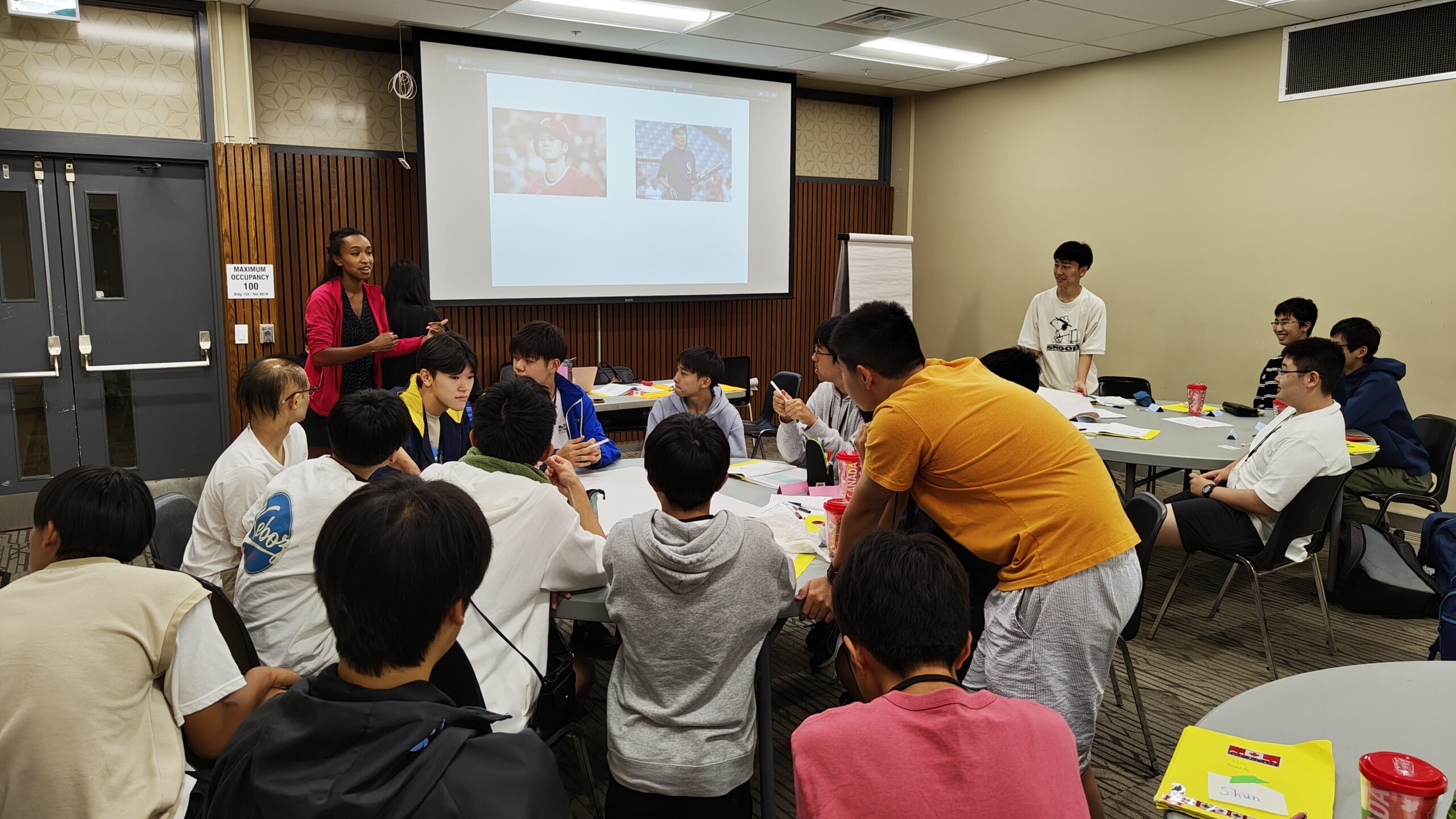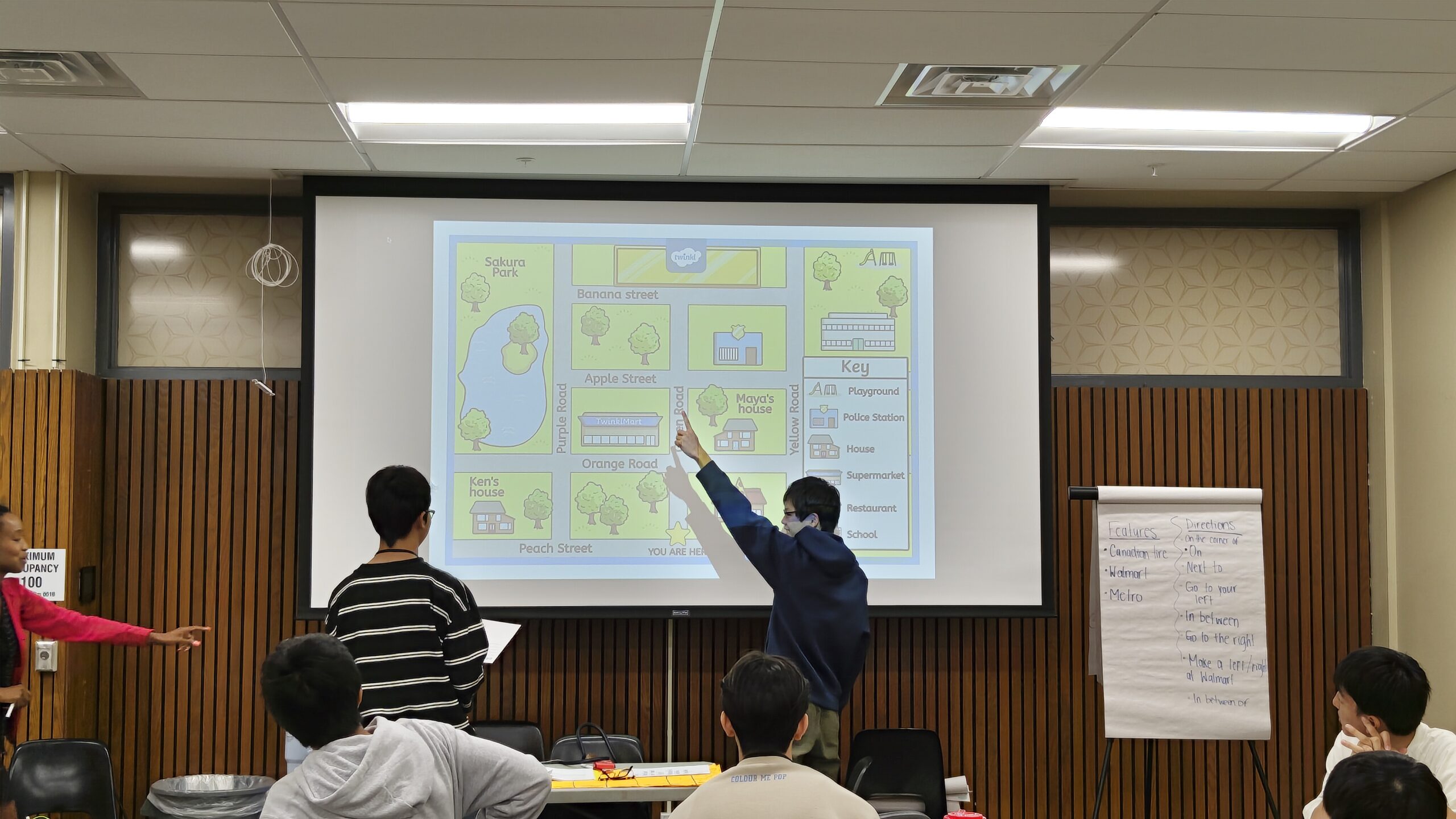 午前中はESLクラスでの授業です。Directionをテーマにした内容では、バス停まで行くのにどう指示を出すのか、などを学習していました。ゴードン先生のクラスでは、生徒の指示どうりにゴードン先生が移動して壁に当たったりしていました。アリーシア先生のクラスでは、午後のDebateに向けて、大谷選手とイチロー選手のどちらが素晴らしい選手かを討論していました。