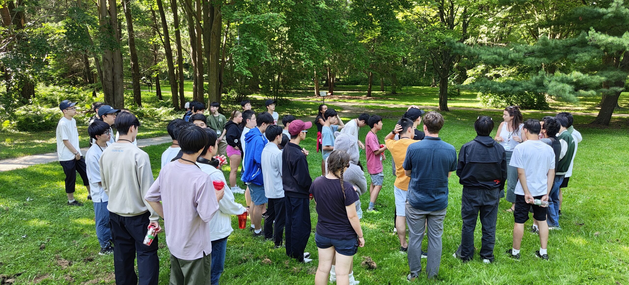 Debate後は外に出て、大学構内にある日本庭園まで散策。緑が多く、途中にはいくつか庭園があり、日本庭園も小さいながらも久しぶりに和を感じられました。
