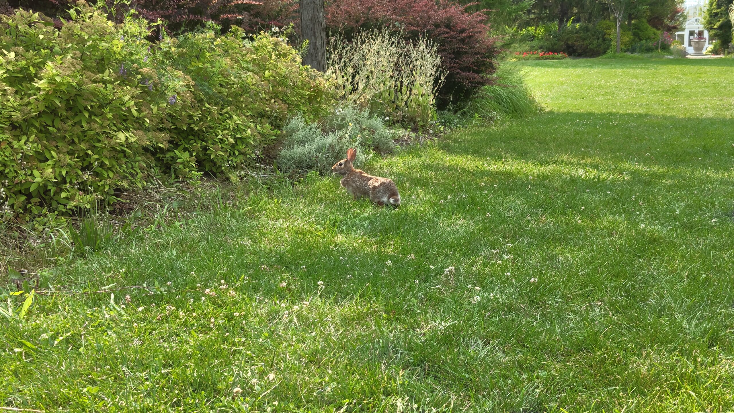 野生動物も多く見かけます。大きめのリスやモグラ、ウサギなどは毎日見かけます。町中をグースが散歩したりしています。ウサギに近づくためにほふく前進をする2名の生徒もいたり。