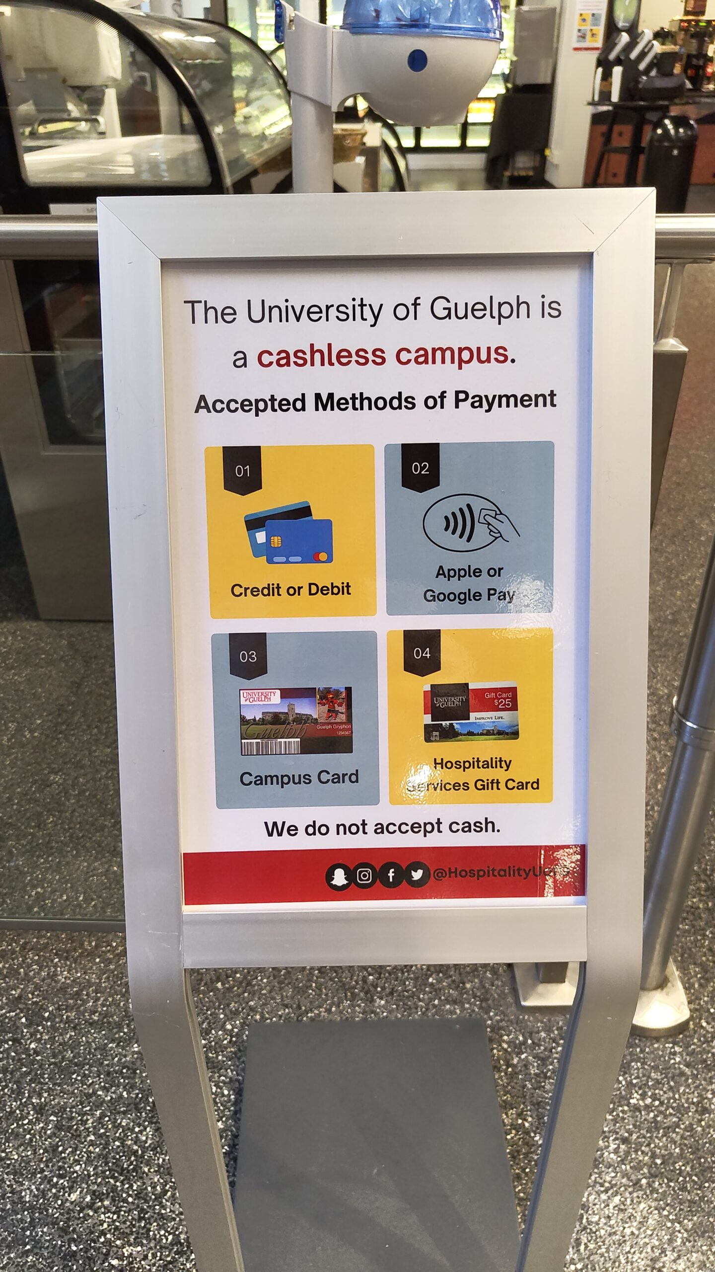 グエルフ大学は、敷地が広く自然も多いキャンパスです。アメリカンフットボールやアイスホッケーの競技場や庭園などもあります。構内にはペットボトルに水を入れられる場所がいくつかあり、生徒たちもよく利用しています。生徒は学生ホールで昼食を食べますが、そこにはテーブルサッカーが置いてあり、毎日食後に遊んでいます。なお、大学構内は完全キャッシュレスとなっており、自販機も含めて現金は使えません。