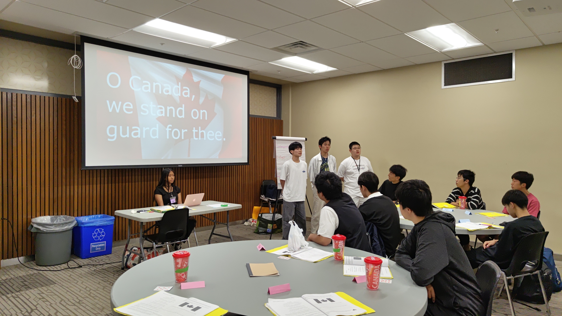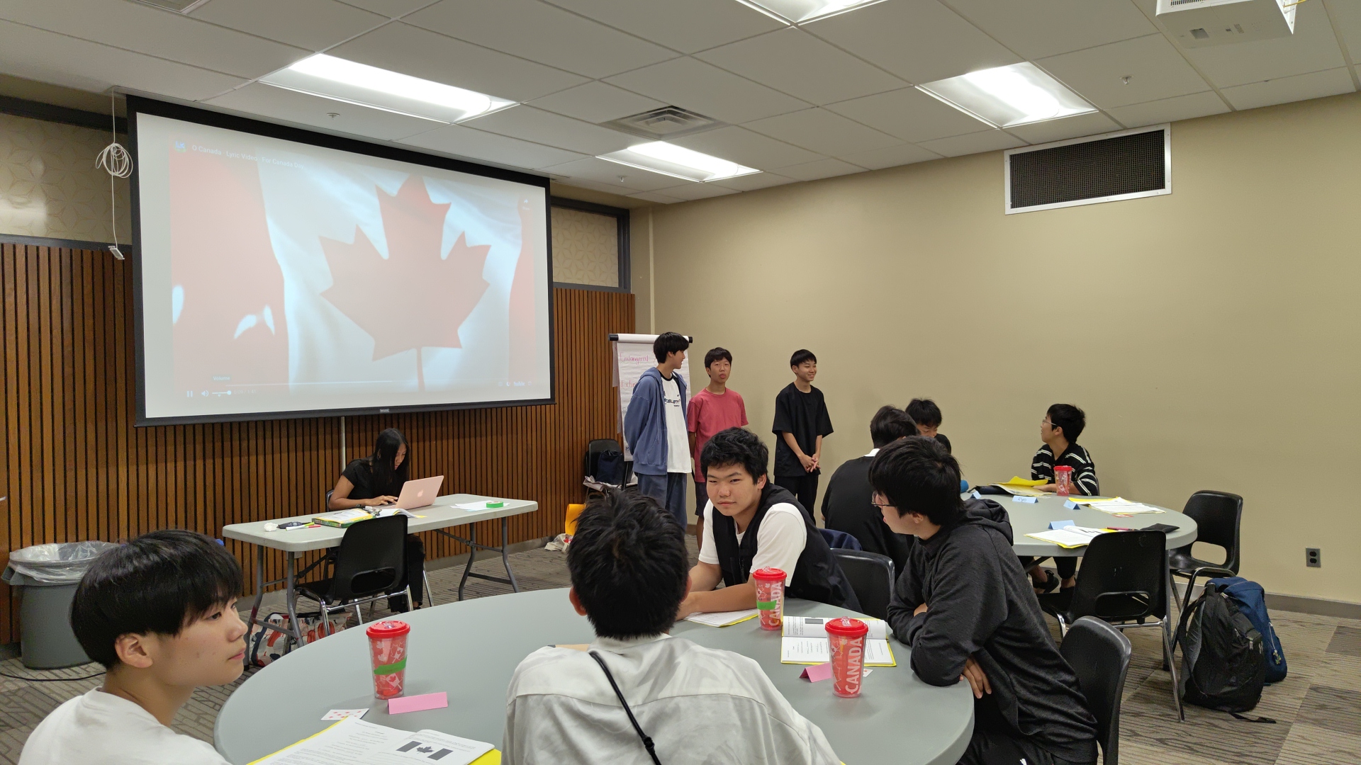 午前中の授業では、まずカナダ国歌の斉唱です。歌詞を見ないで歌える生徒も増えてきました。帰国後、パリオリンピックでカナダ国歌が流れたらぜひ歌って欲しいと思います。続いて、カナダの歴史や生態系をテーマに日本との違いなどを交えて、学習していました。今週初めは、慣れてきたせいもあってか無駄話が多く注意されることもありましたが、今は程よい緊張感をもちつつ、リラックスして授業を受けているように感じます。