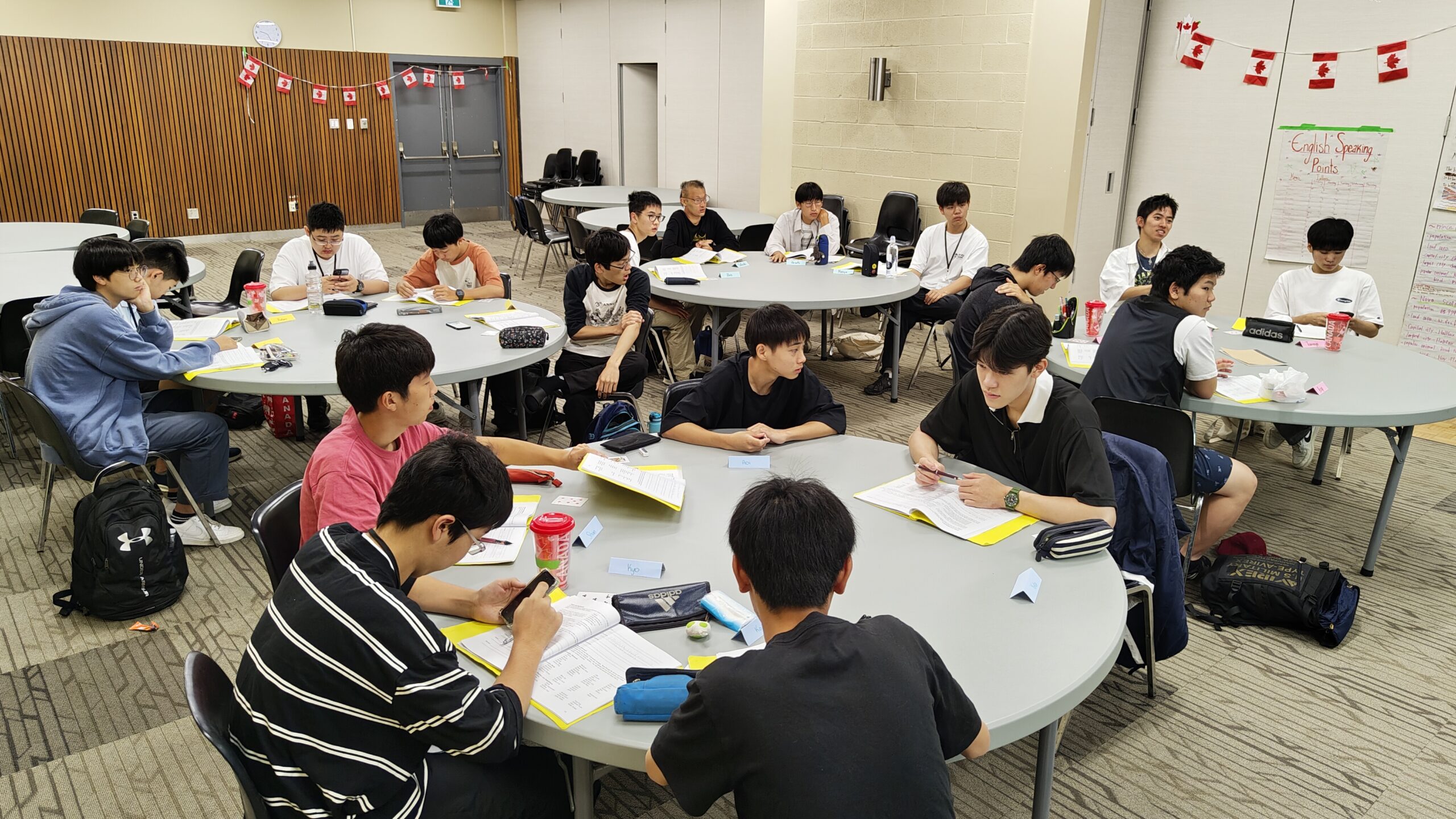 午前中の授業では、まずカナダ国歌の斉唱です。歌詞を見ないで歌える生徒も増えてきました。帰国後、パリオリンピックでカナダ国歌が流れたらぜひ歌って欲しいと思います。続いて、カナダの歴史や生態系をテーマに日本との違いなどを交えて、学習していました。今週初めは、慣れてきたせいもあってか無駄話が多く注意されることもありましたが、今は程よい緊張感をもちつつ、リラックスして授業を受けているように感じます。