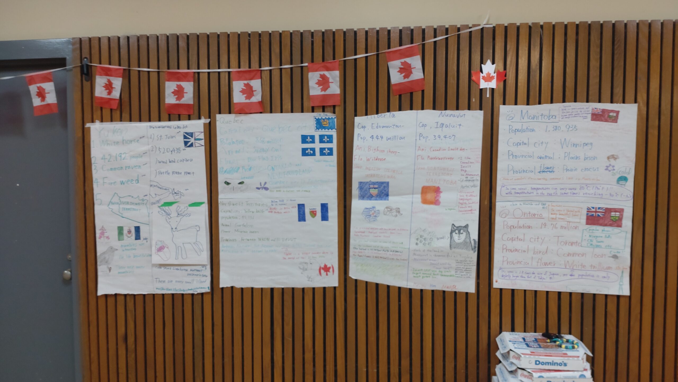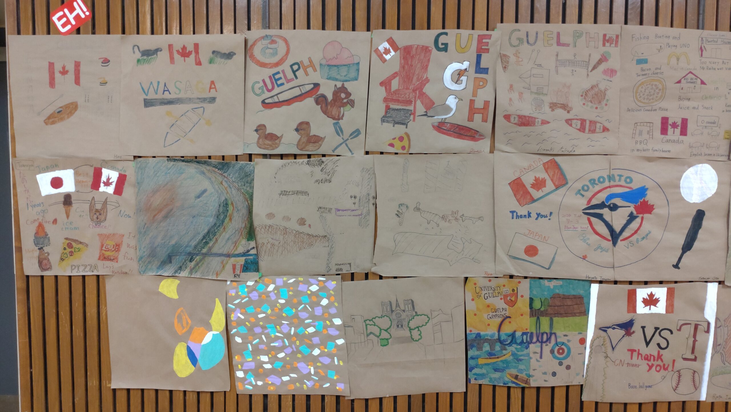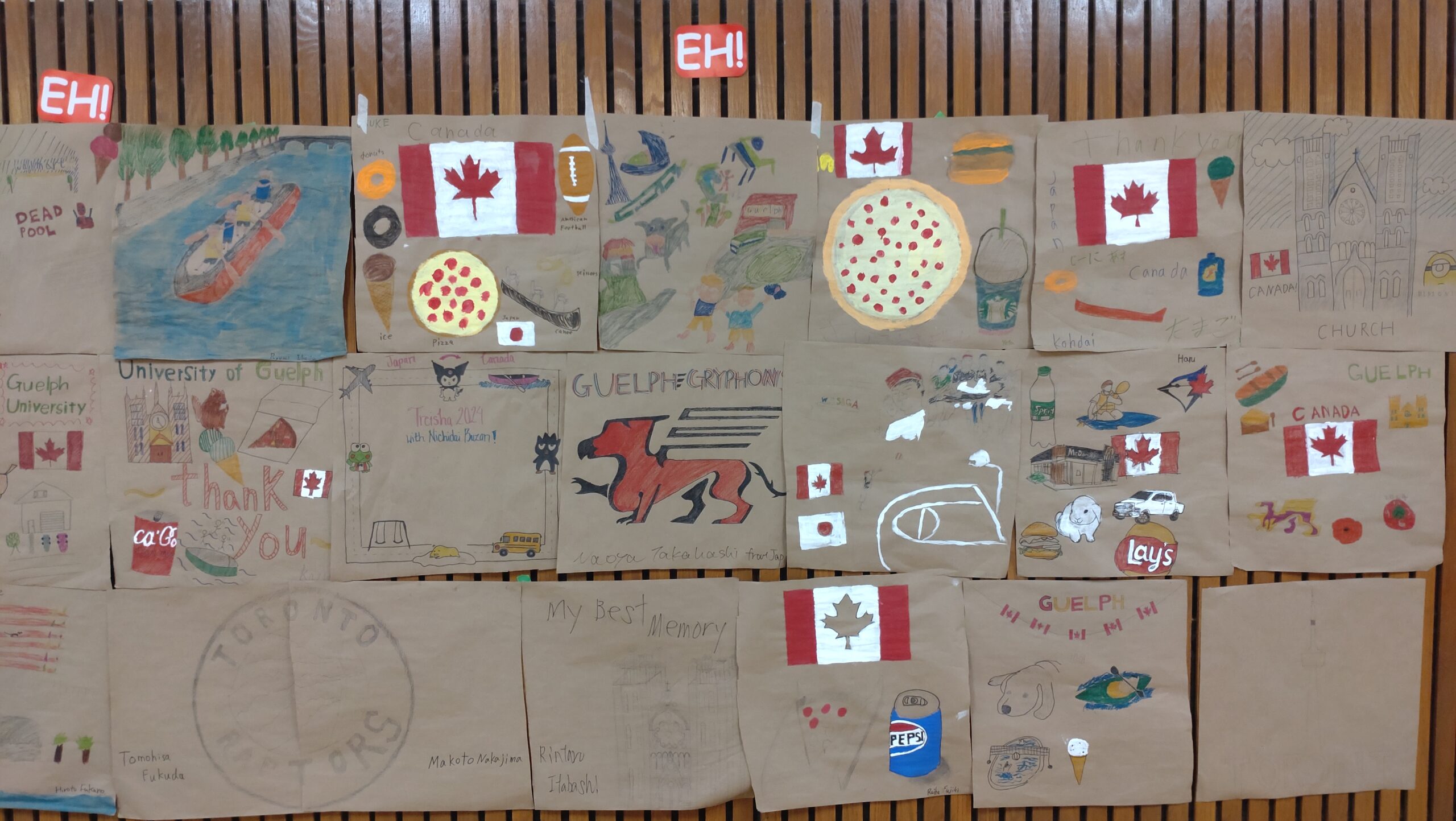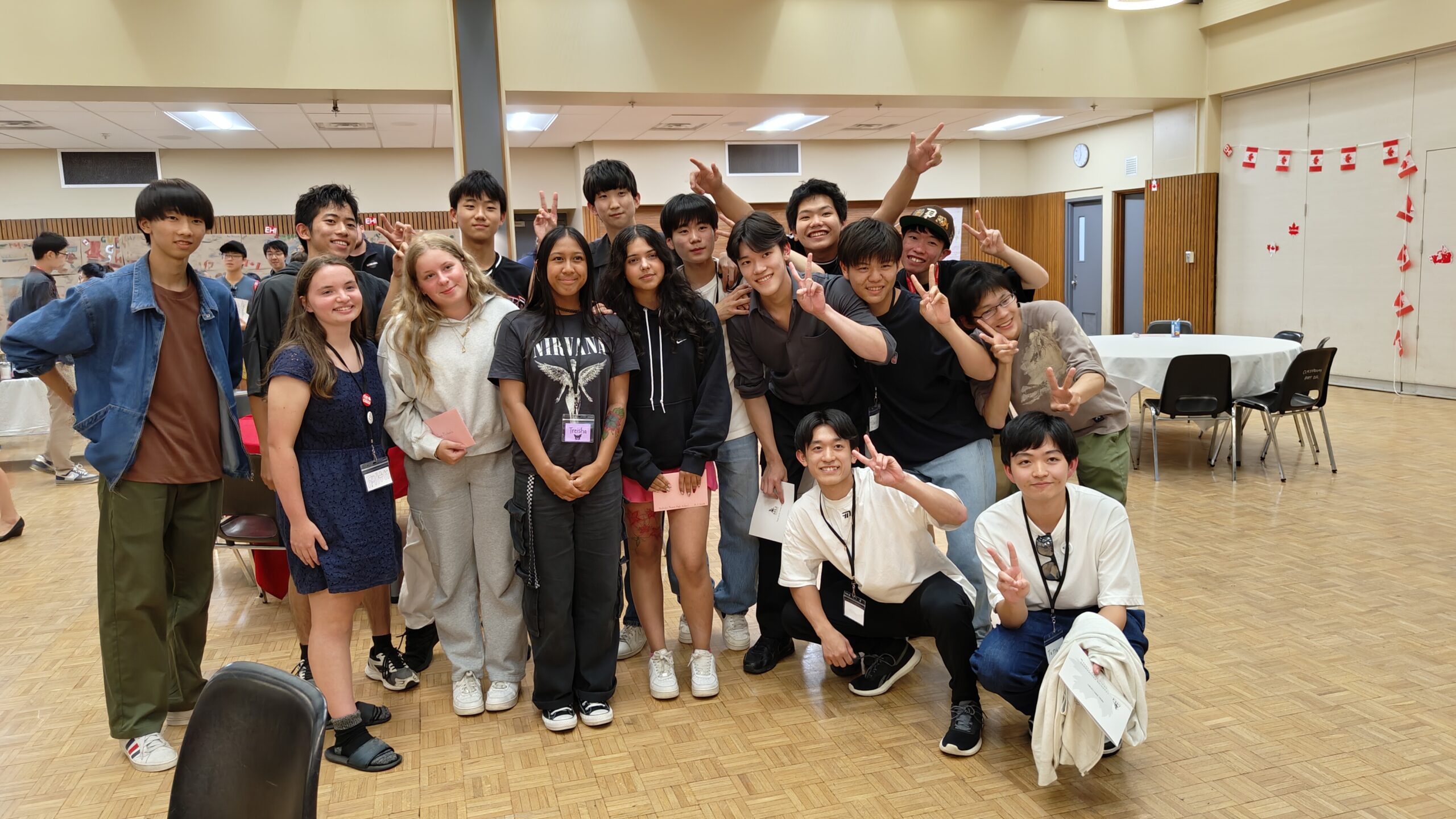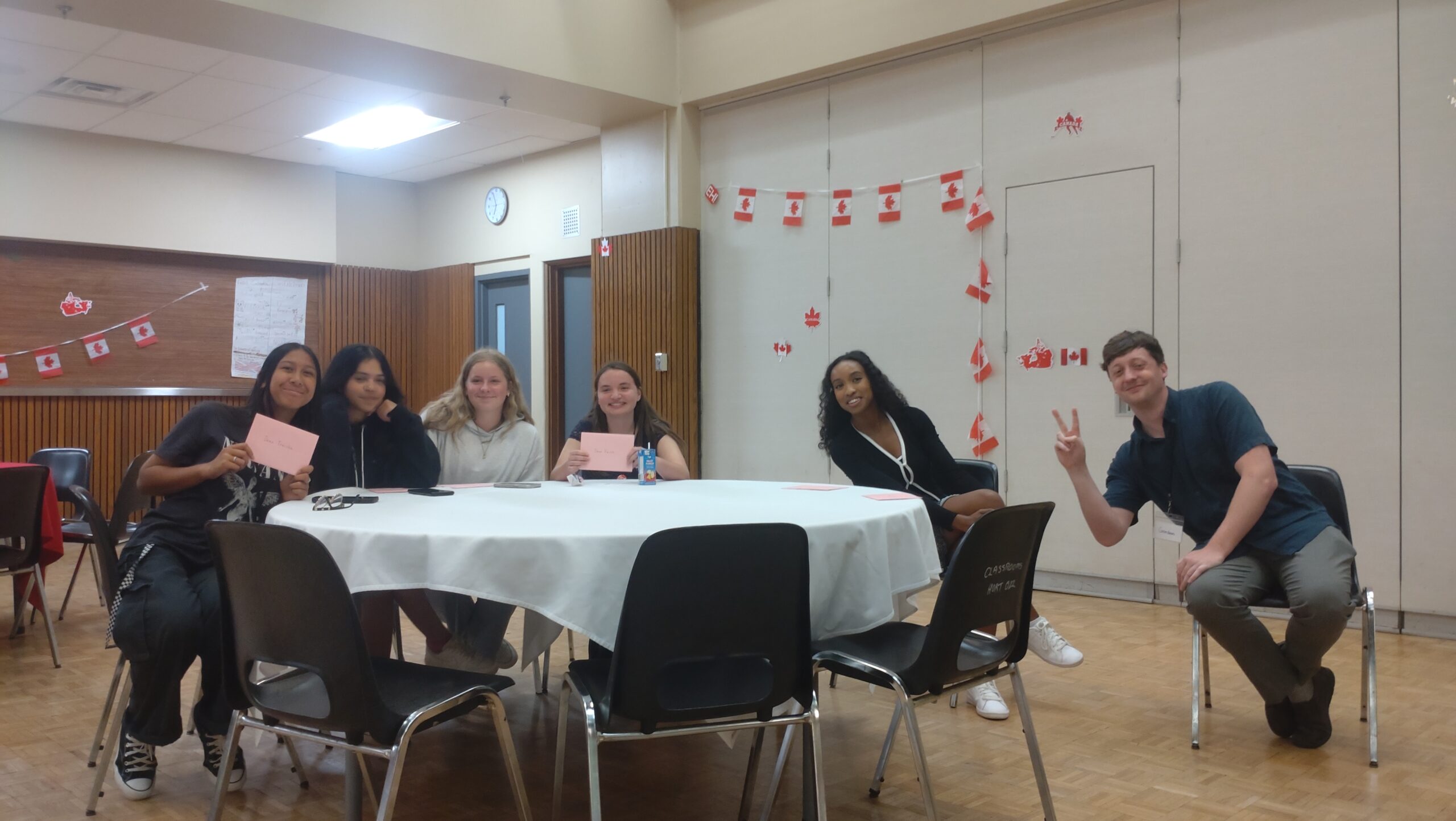 ついにフェアウェルセレモニーの日を迎えました。これに向けて、午前中は両クラスともカナダ国歌と豊山校歌の練習を行い、その後、ホストファミリーへの手紙を書きました。午後は、部屋の飾りつけを行ってから予行練習をしました。途中にマットゲームをはさみつつ、生徒の動きを何度も確認し、歌の練習もしました。実はサプライズで、先生やアシスタントに向けてメッセージカードを作っており、それをどのタイミングで渡すのかといった打ち合わせを日本語だけで行ったりもしました。