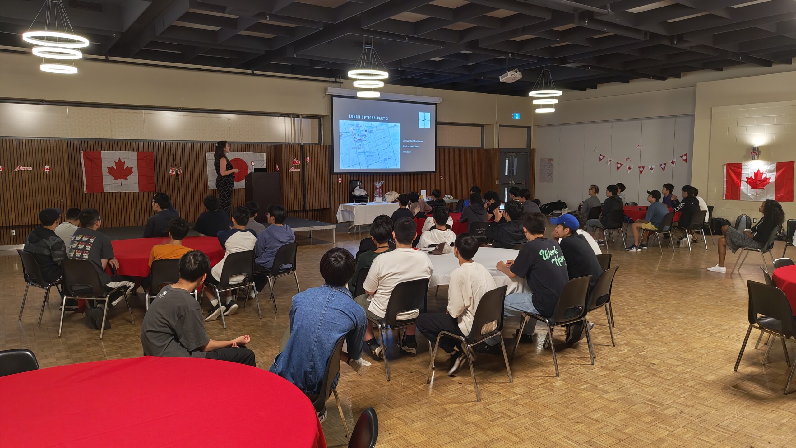 その後、トロントの地理や観光スポット、注意事項などをエイドリアン先生からレクチャーしていただき、班別自主研修に向けた話し合いをしました。