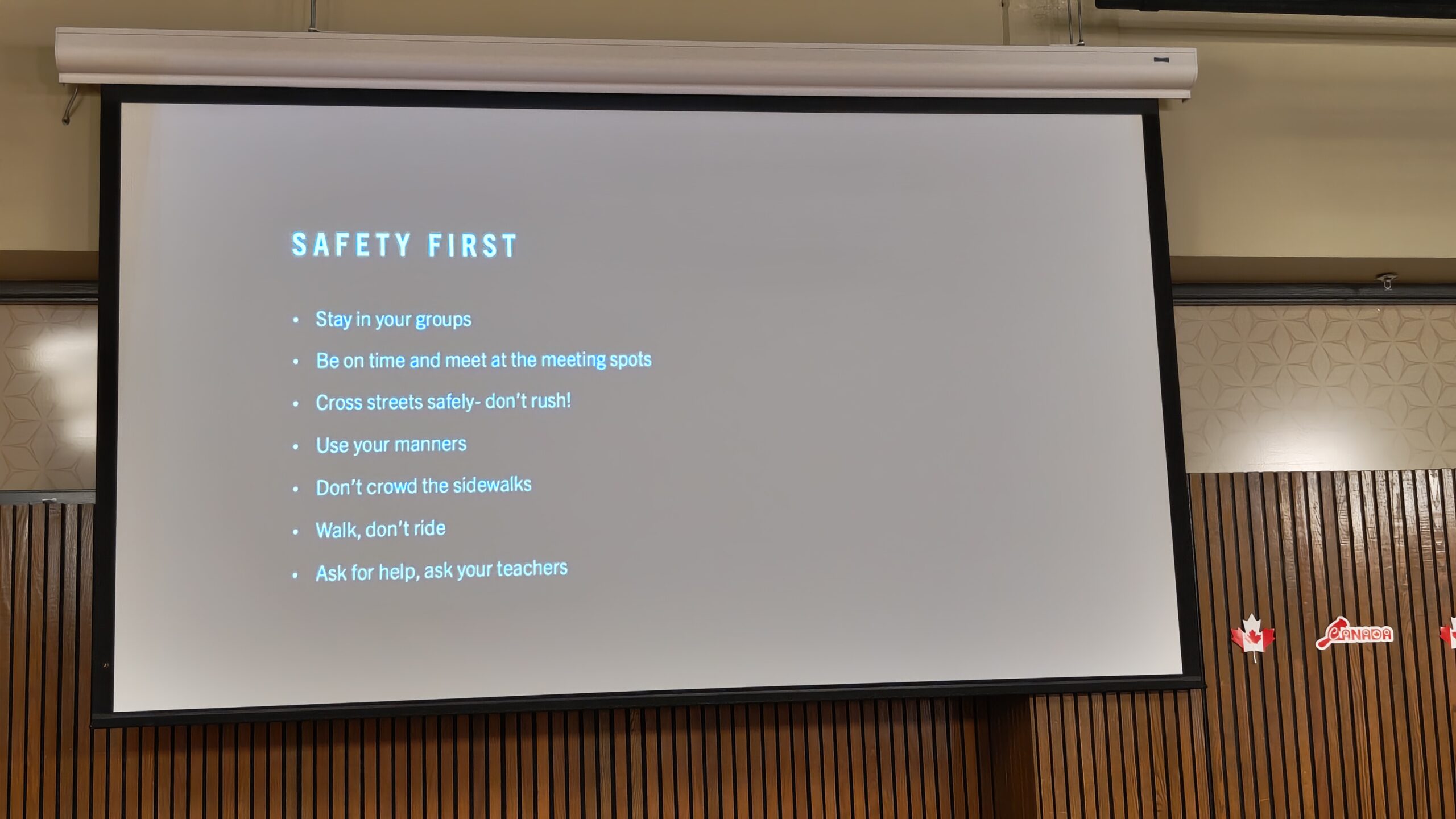 そしてホテルへ移動して、チェックイン。ホテルでのマナーやルールについての説明を受け、今頃は明日のナイアガラフォールズ見学に向けてゆっくり休んでいるはず?です。では、おやすみなさい。