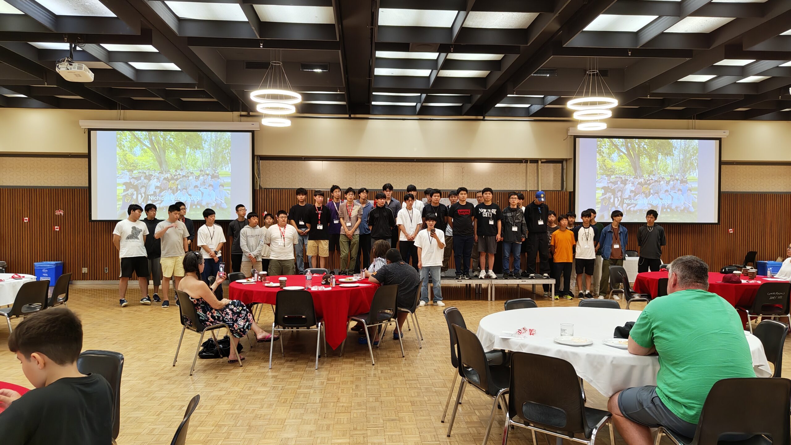 ついに生徒たちの出番です。カナダ国歌と豊山校歌(2番まで)を歌います。予行通りに並び、歌が始まると予行よりも大きな声で堂々と歌っていて、教員2名ちょっとうるっときました。