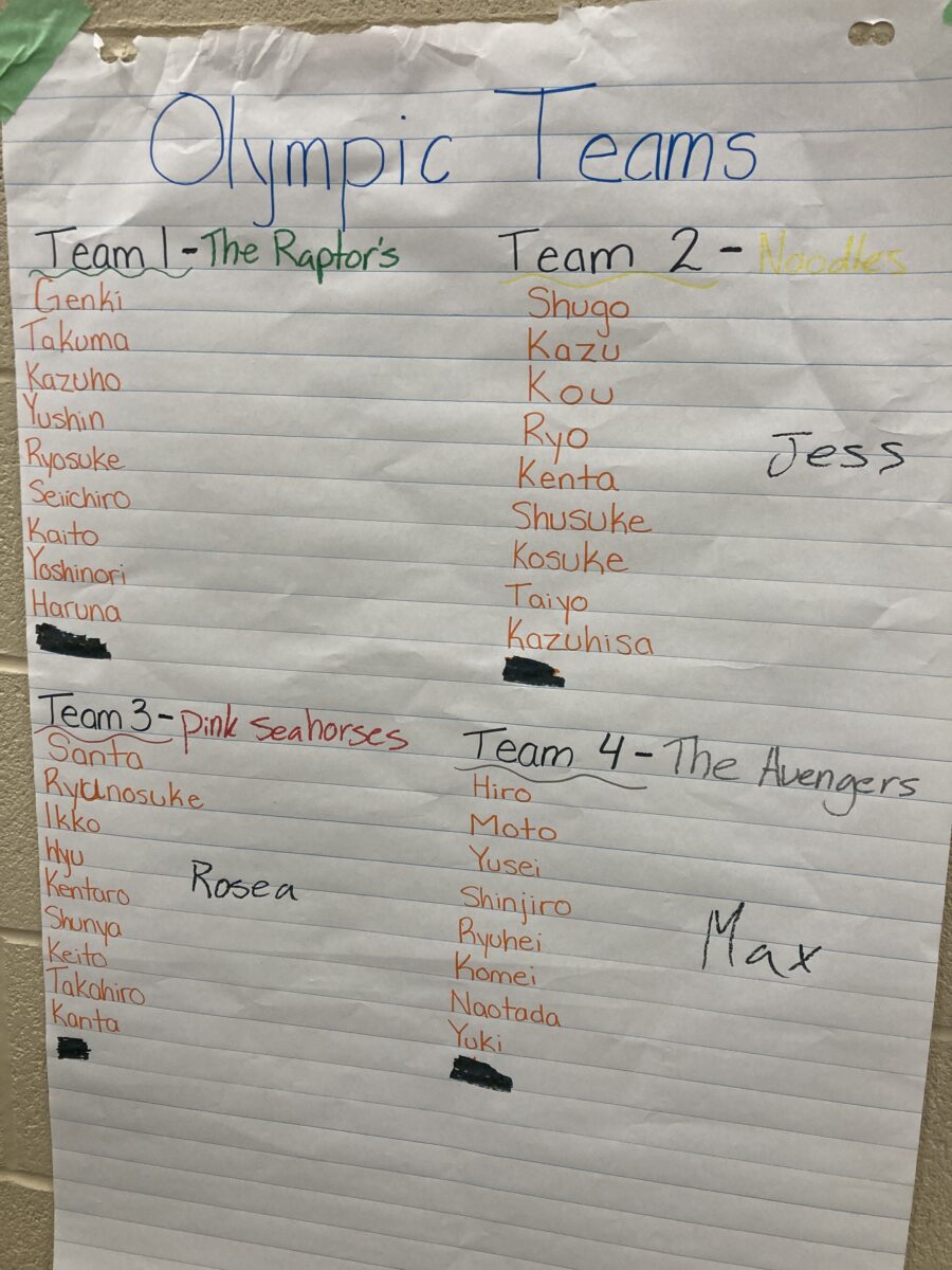 ミニオリンピックでは,高校生バディたちが以下のように綿密な計画を立ててきてくれたおかげで,生徒たちは中身の濃い”熱い”時間を過ごすことができました。