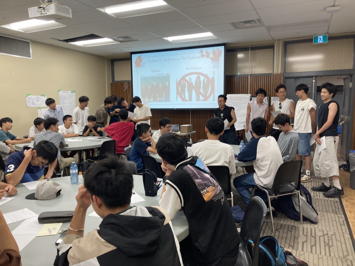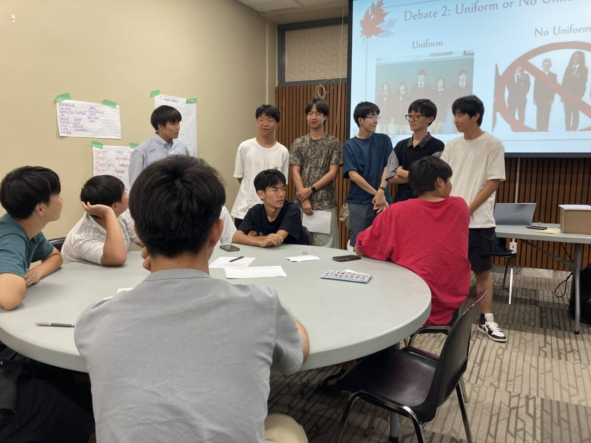 午後の授業では,ディベートと記憶ゲームが行われました。特にディベートは大いに盛り上がりました。生徒たちが先生方やバディに支えられながら全力で英語での議論に挑む姿は,引率する私たちにとっても大変嬉しく,頼もしく感じられました。