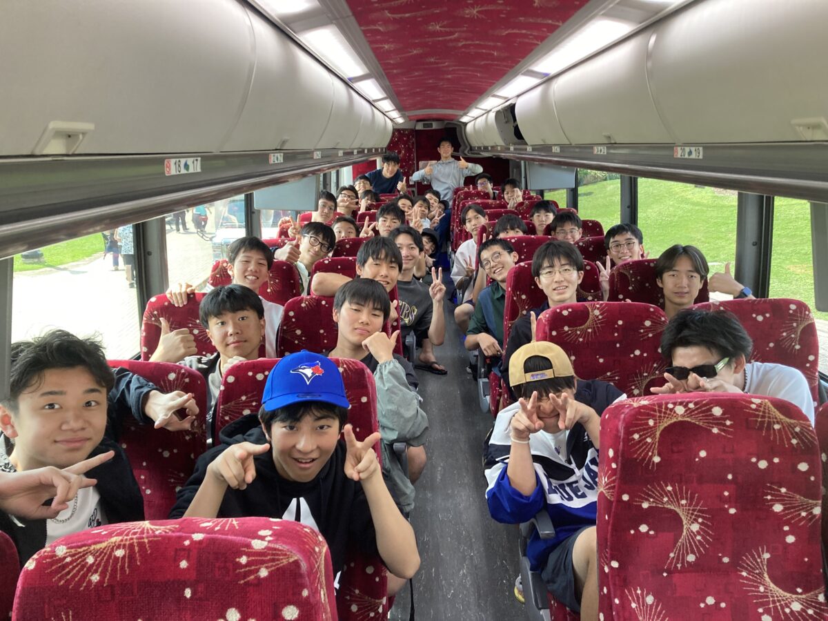 帰りのバスの中では,すっかり打ち解けた仲間たちと残された時間を楽しんでいました。
