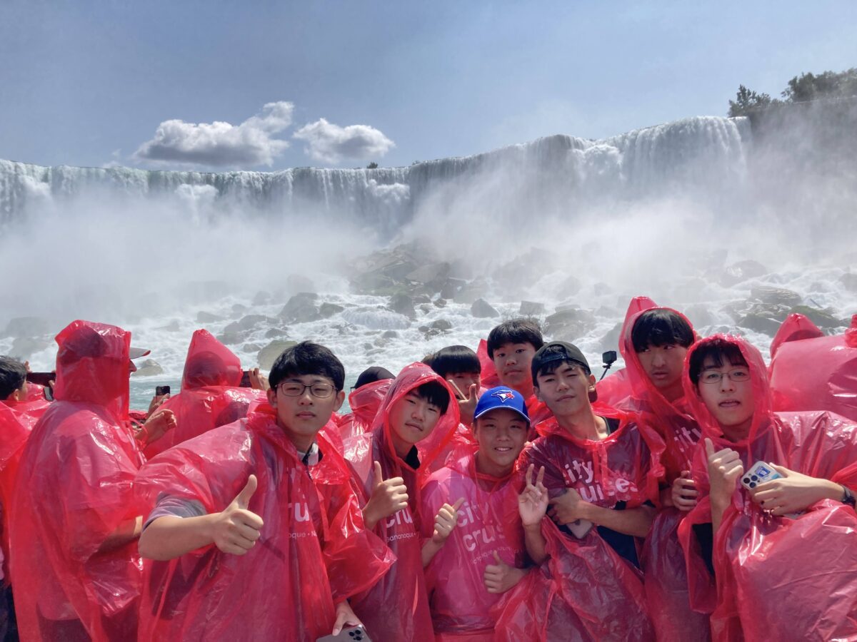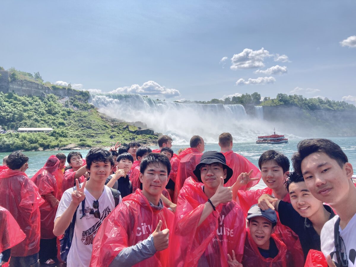 本日はナイアガラフォールズを訪れ,シティクルーズを体験しました。壮大な自然のスケールを目の当たりにし,生徒たちは全身に水しぶきを浴びて,思わずテンションが上がっていました。