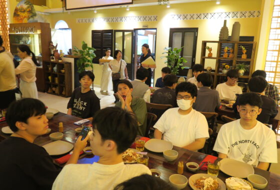 全コースが夕方に一旦ホテルに戻り,全員バスでレストランへ向かい,ベトナム料理を食べました。