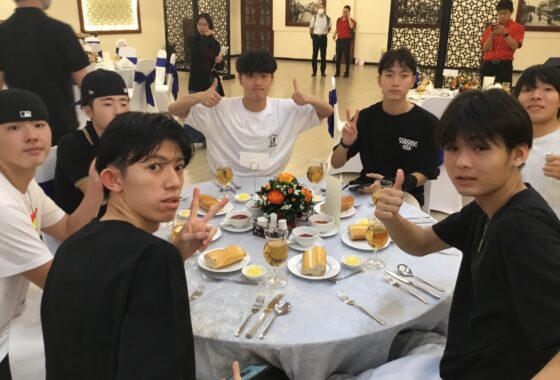 バイキング形式の朝食を食べ,進学・体育クラスはファン・ダン・ルー高校へ。