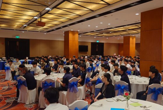 進学・体育・特進クラスはホテルに戻り,日本人起業家による講演会を行いました。