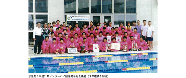 本校水泳部のルーツを回顧してみて改めて半世紀以上にわたり本校水泳部が成長できたのは、学校側が非常に協力的に応援して下さったこと、水泳部のOBの方達が陰の力となり、選手の指導及び経済的にも多くの援助をして下さったことにあると確信した。