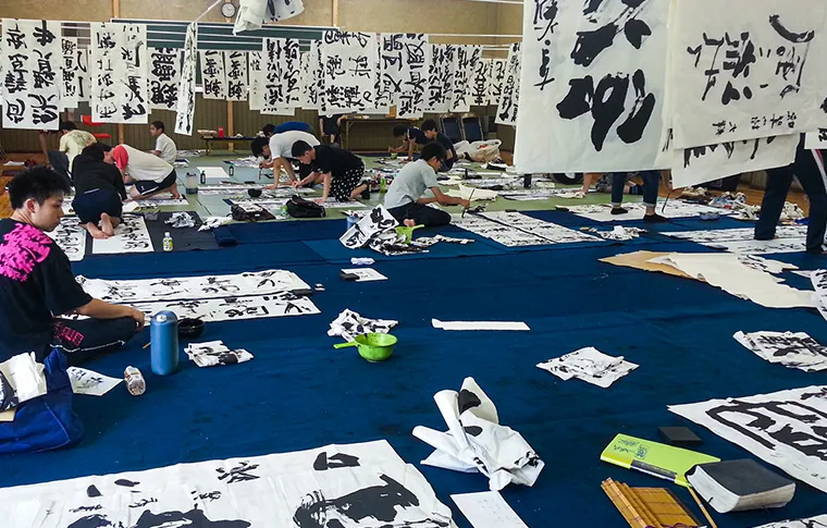 生徒一人一人が己の字と向き合い、1つの作品が出来上がるまで集中しており、また部員同士が互いを高め合い、わきあいあいとしています。