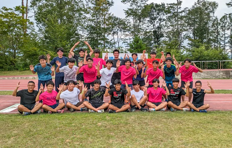 この陸上競技部では主にインターハイを目標に日々練習をしています。強くなりたい方はぜひ体験に来てみてください。